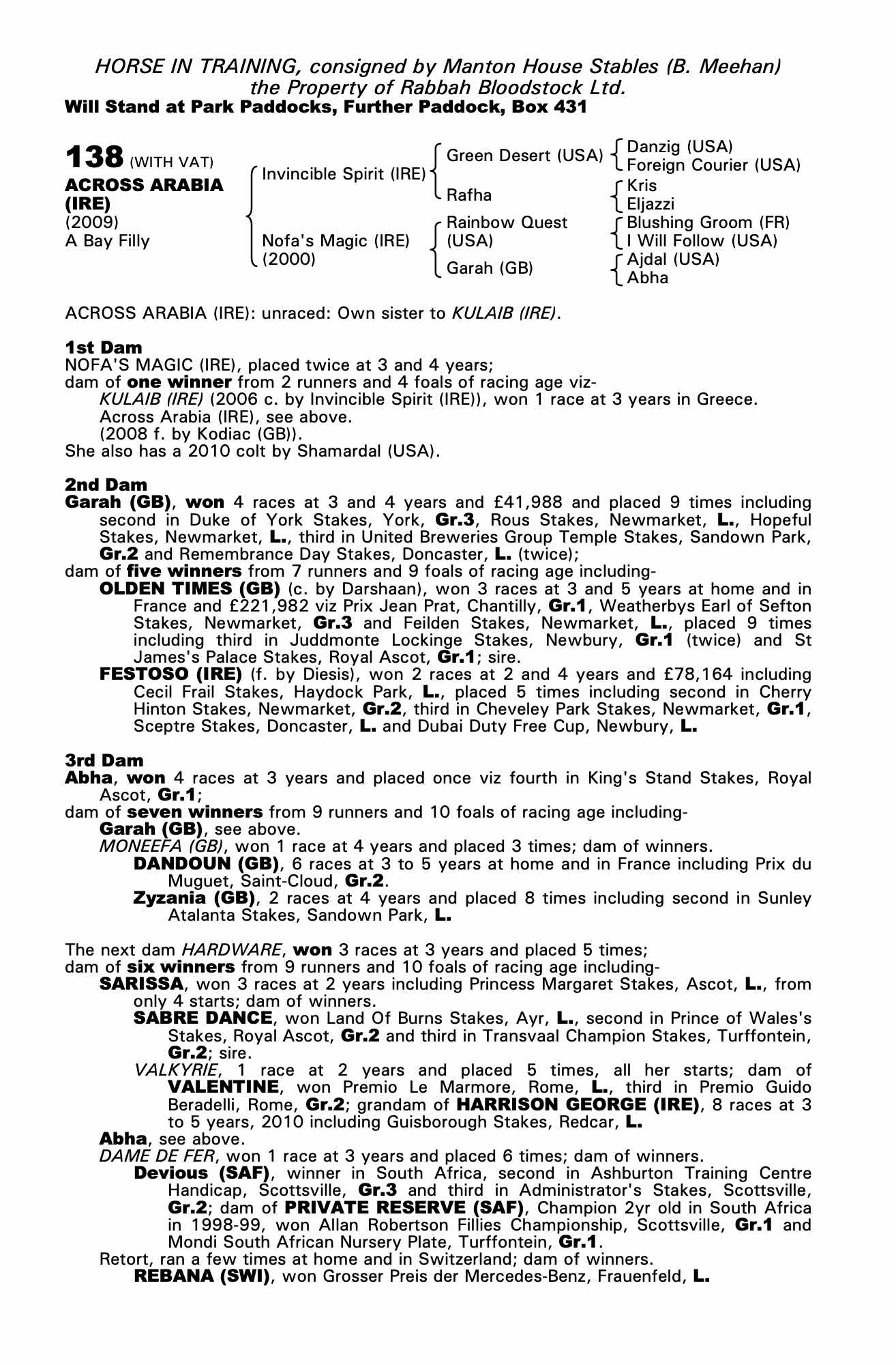 Consignor: Manton House Stables (B. Meehan)