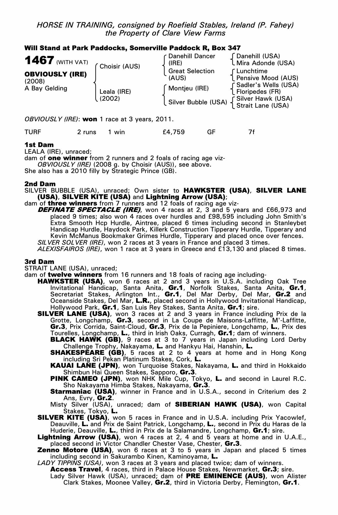 Consignor: Roefield Stables, Ireland (P. Fahey)