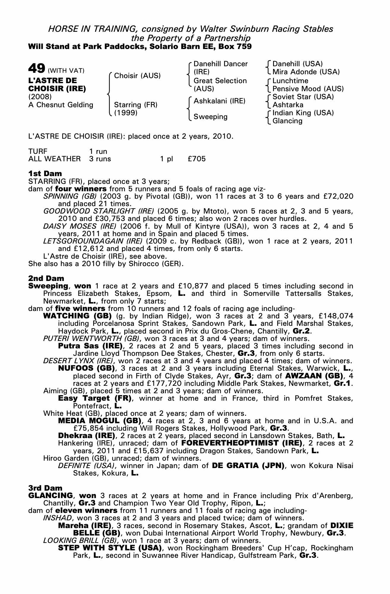 Autumn Horses in Training Sale 2008 lot 773 Goodwood Starlight (IRE) (C. by Mtoto), Castle Stables, Arundel=>John Penny 33,000 gns