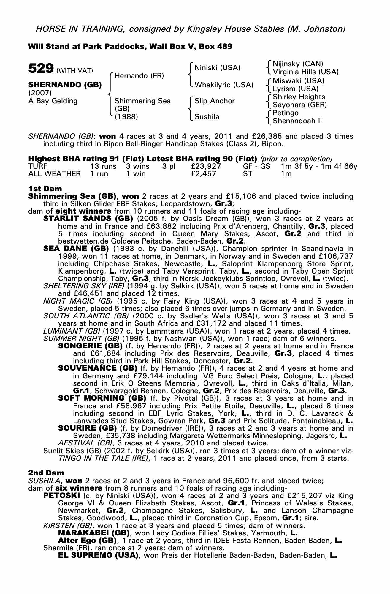 Consignor: Kingsley House Stables (M. Johnston)
