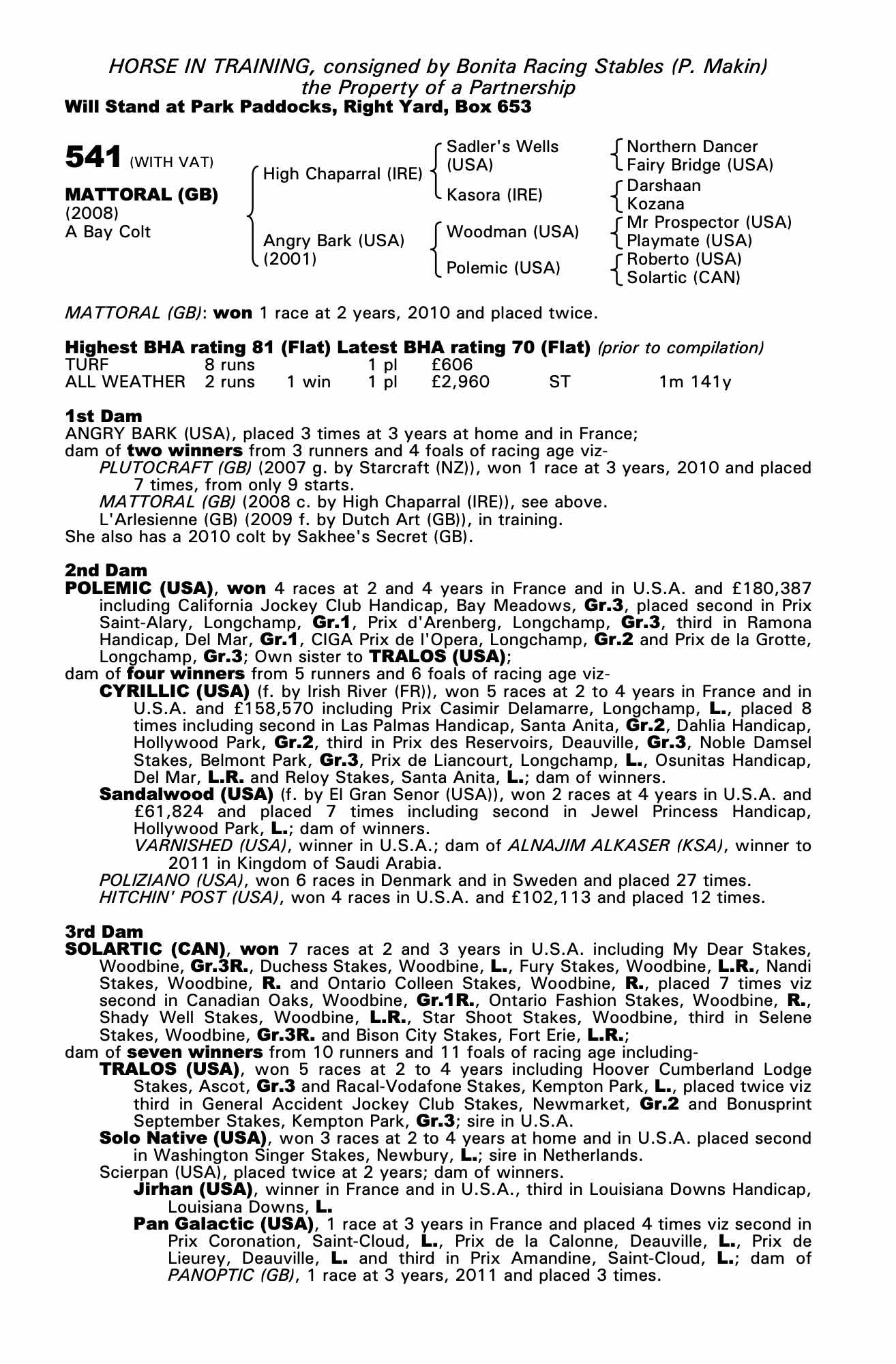 Consignor: Bonita Racing Stables (P. Makin)