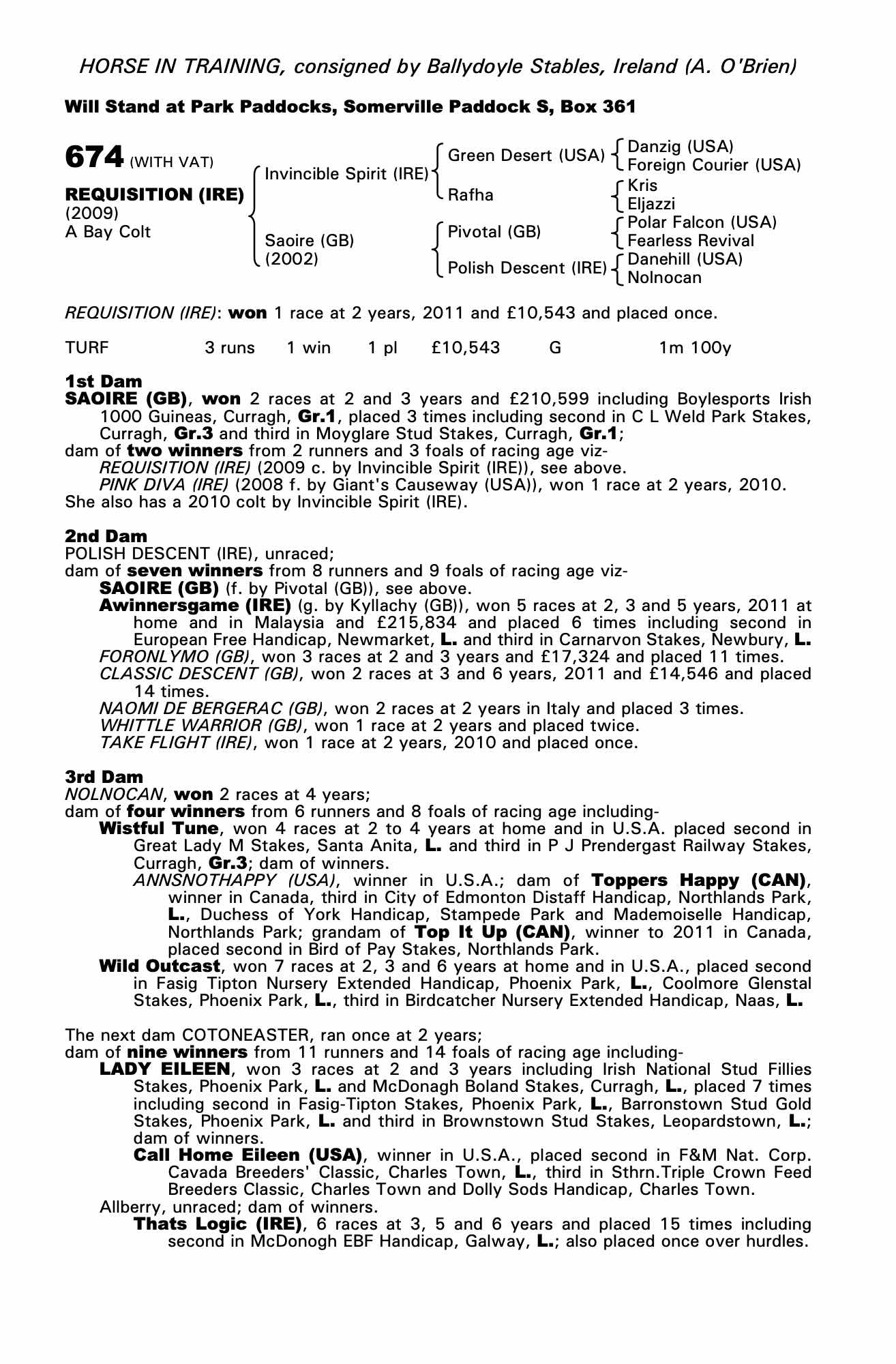 Consignor: Ballydoyle Stables, Ireland (A. O'Brien)