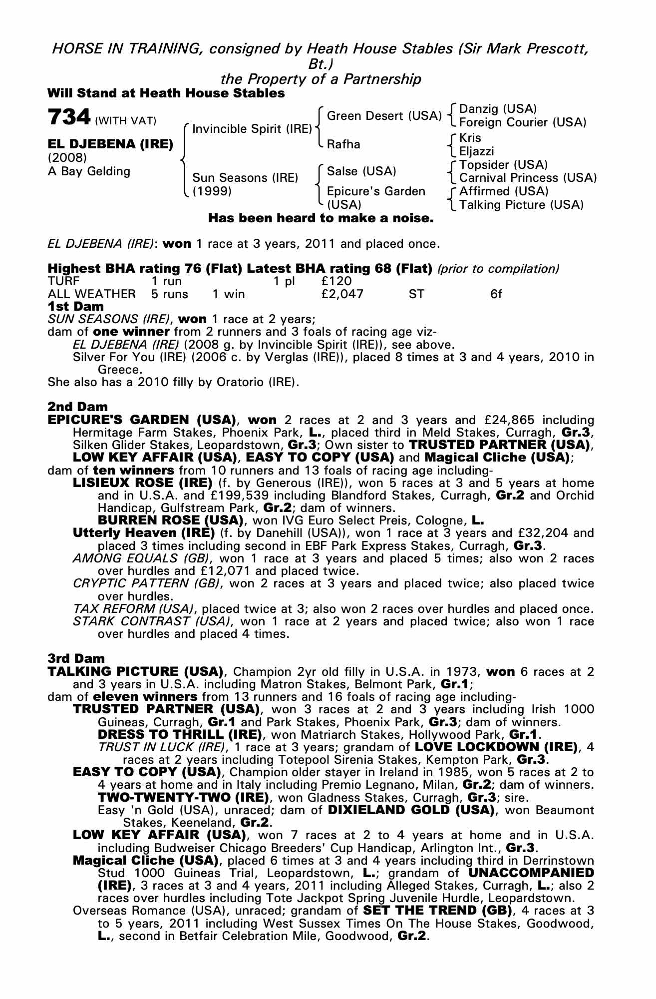 Consignor: Heath House Stables (Sir Mark Prescott, Bt.)