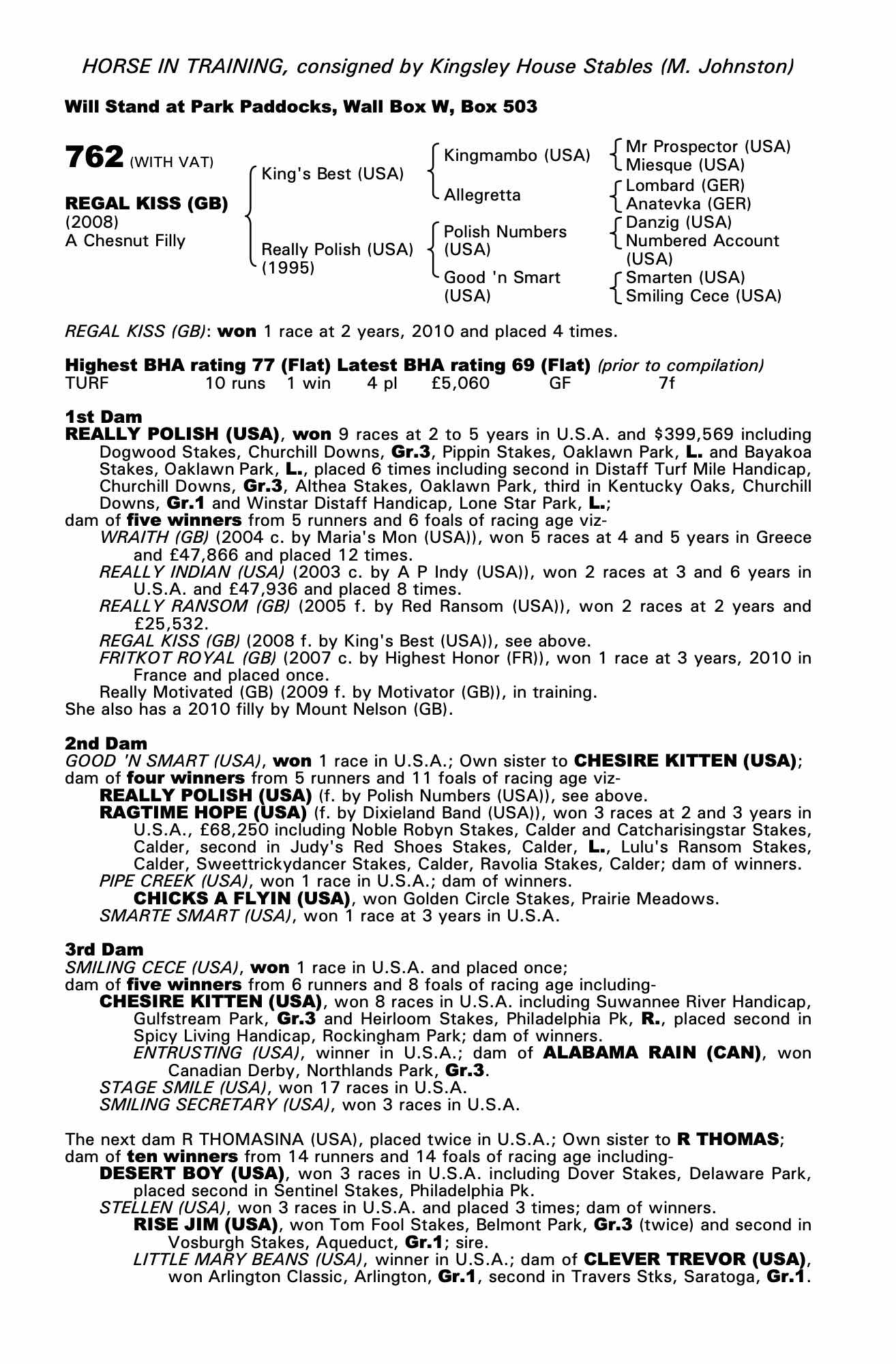 Consignor: Kingsley House Stables (M. Johnston)