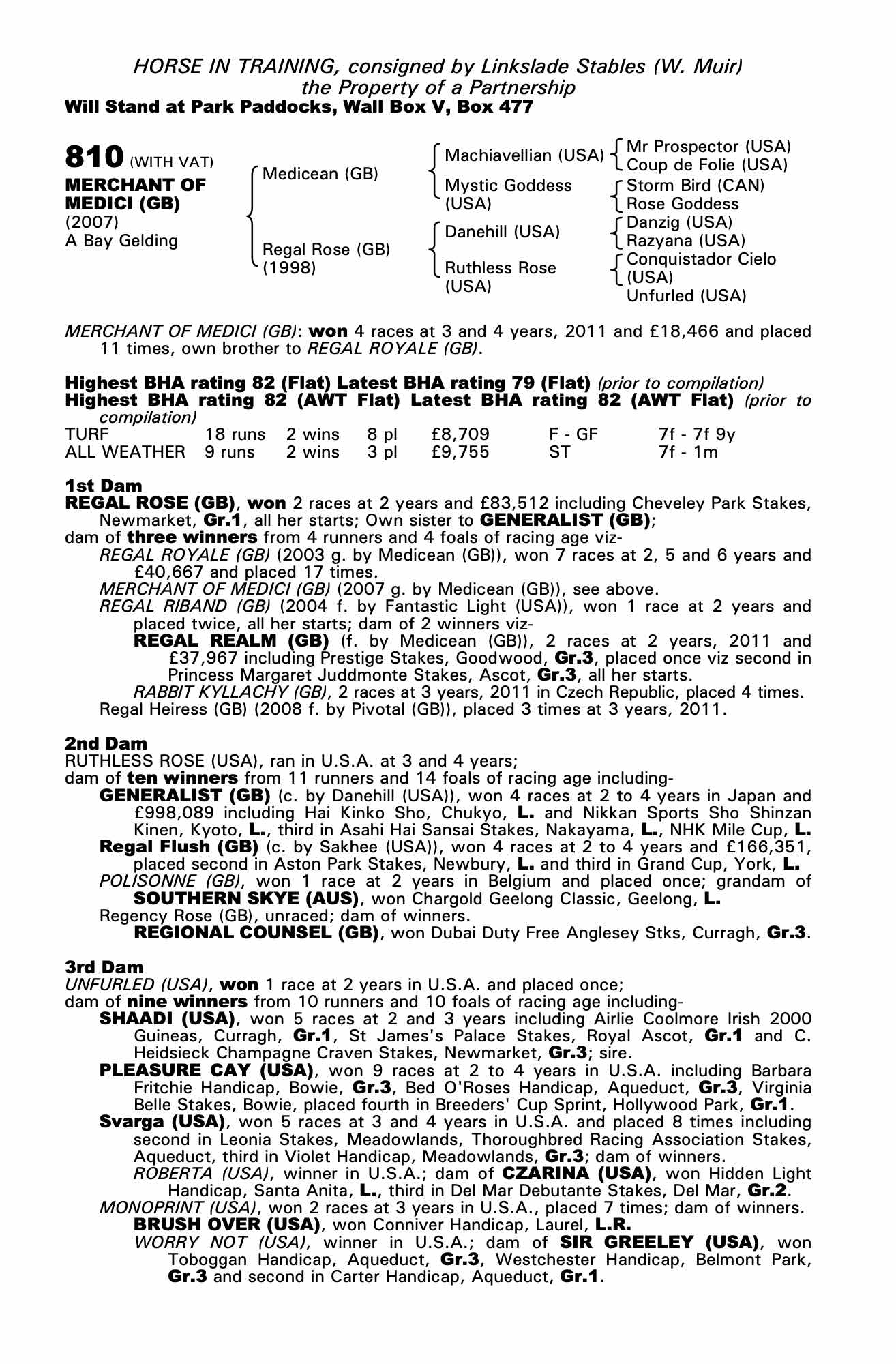 Autumn Horses in Training Sale 2010 lot 849, Linkslade Stables (W. Muir)=>Lot Not Sold 27,000 gns