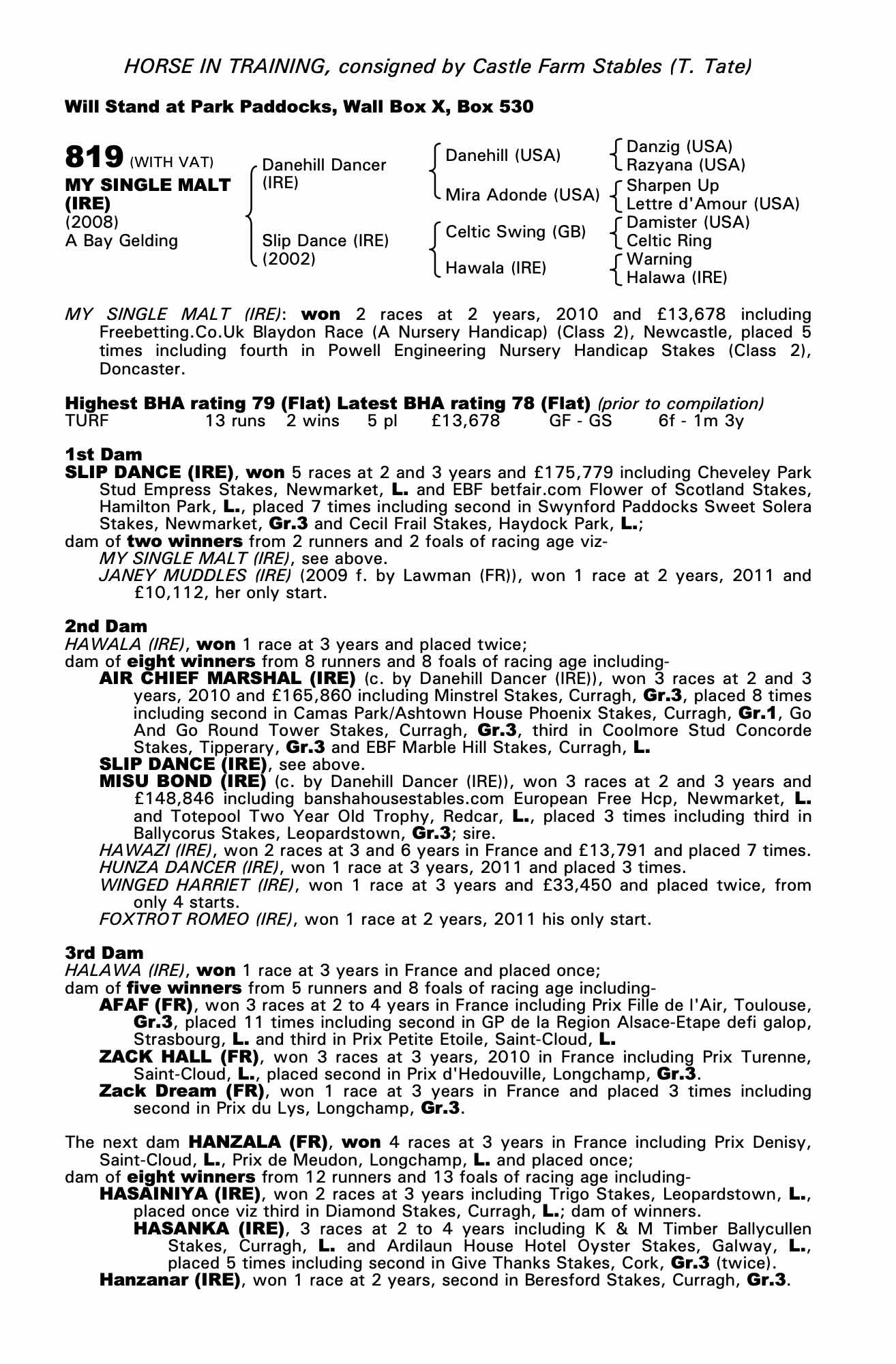 Consignor: Castle Farm Stables (T. Tate)