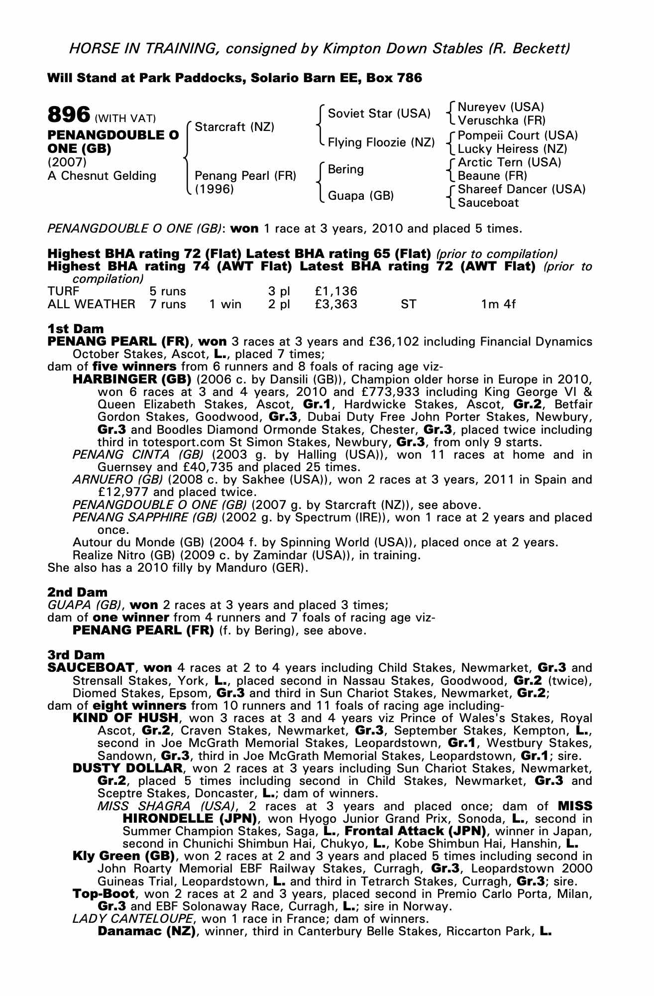 February Sale 2009 lot 11 Penang Cry (GB) (F. by Barathea (IRE)), Ashbrittle Stud=>Lot Not Sold