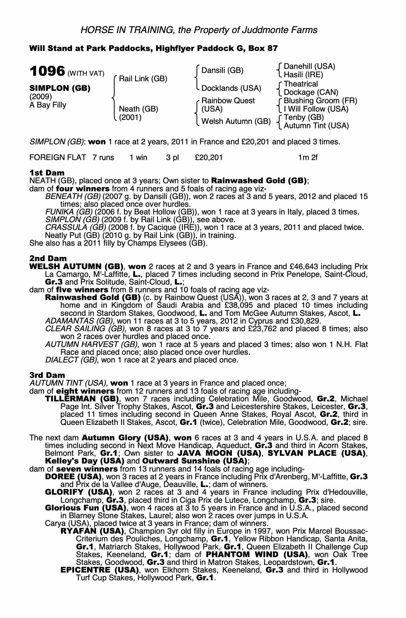 July Sale 2010 lot 415 Beneath (GB) (C. by Dansili (GB)), Juddmonte Farms=>Stephen Hillen 32,000 gns