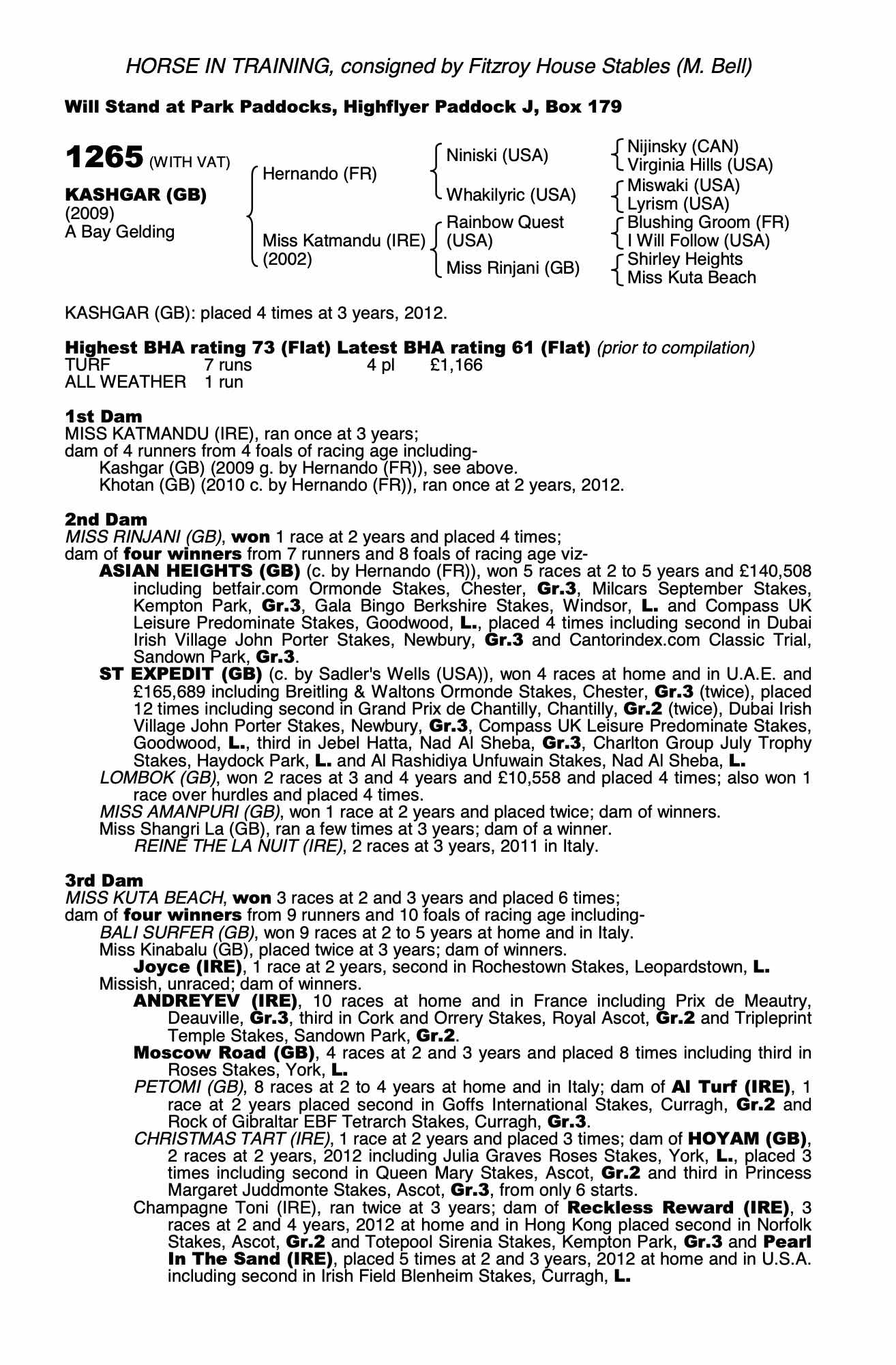 August Sale 2023 lot 21 F. by Sir Percy (GB) 2019, G. L. Moore Racing LLP=>Lot Not Sold