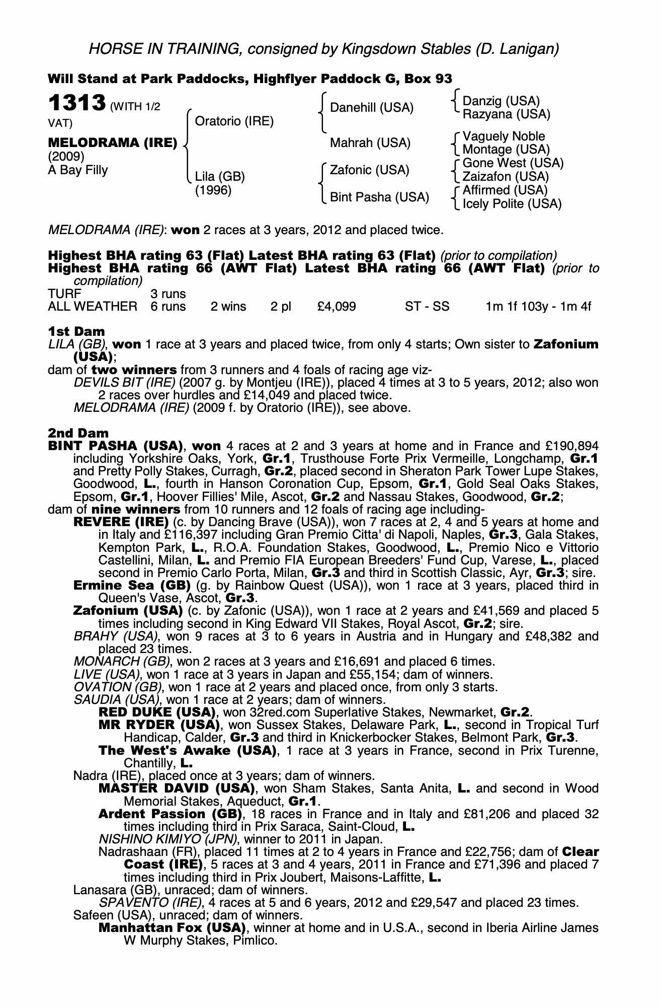 Consignor: Kingsdown Stables (D. Lanigan)