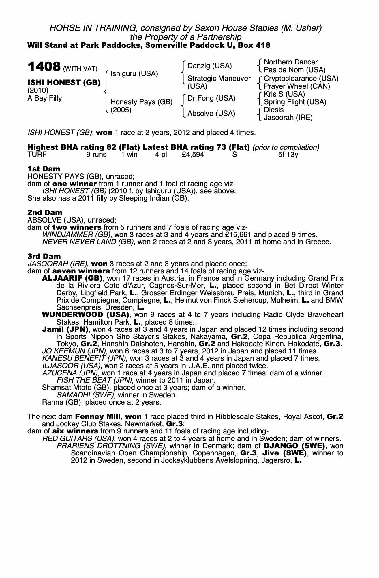 Autumn Horses in Training Sale 2015 lot 949 Sheer Honesty (GB) (F. by Hellvelyn (GB)), Park House Stables (A. Balding)=>Gay Kelleway Racing 8,000 gns