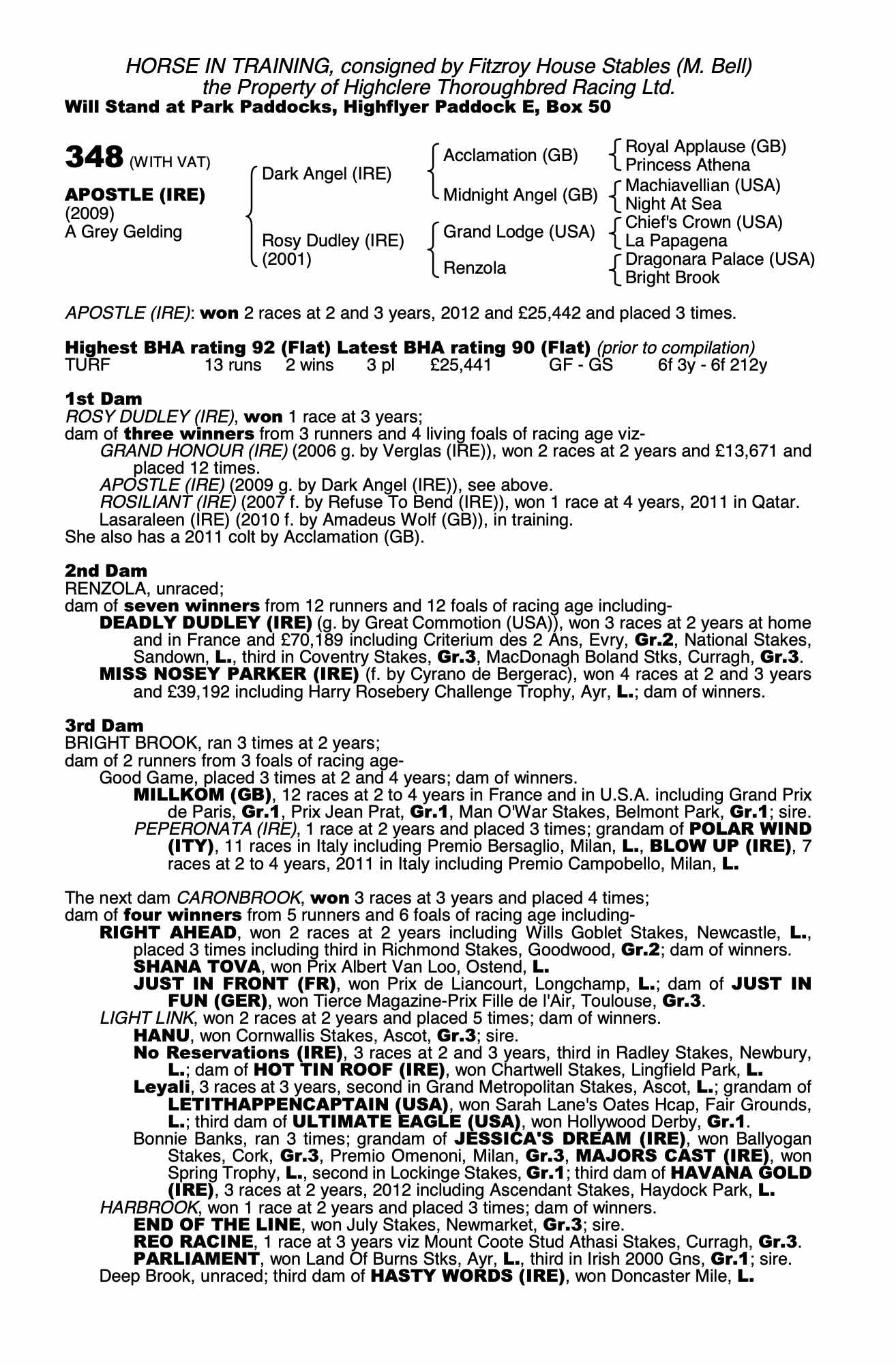 October Yearling Sale, Book 1 2012 lot 228 C. by Acclamation (GB) 2011, Pier House Stud, Ireland=>Shadwell Estate Company 240,000 gns