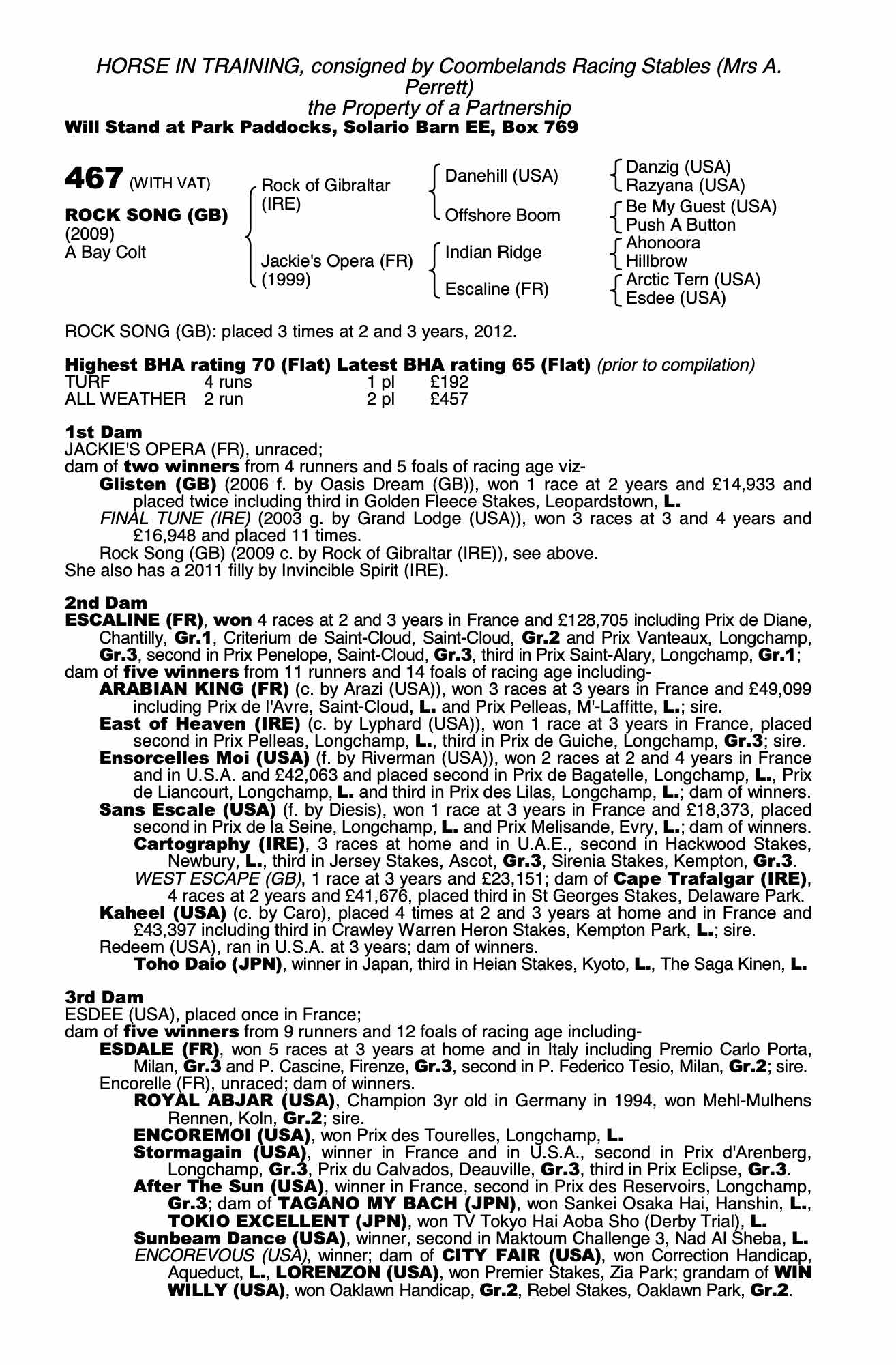 Consignor: Coombelands Racing Stables (Mrs A. Perrett)