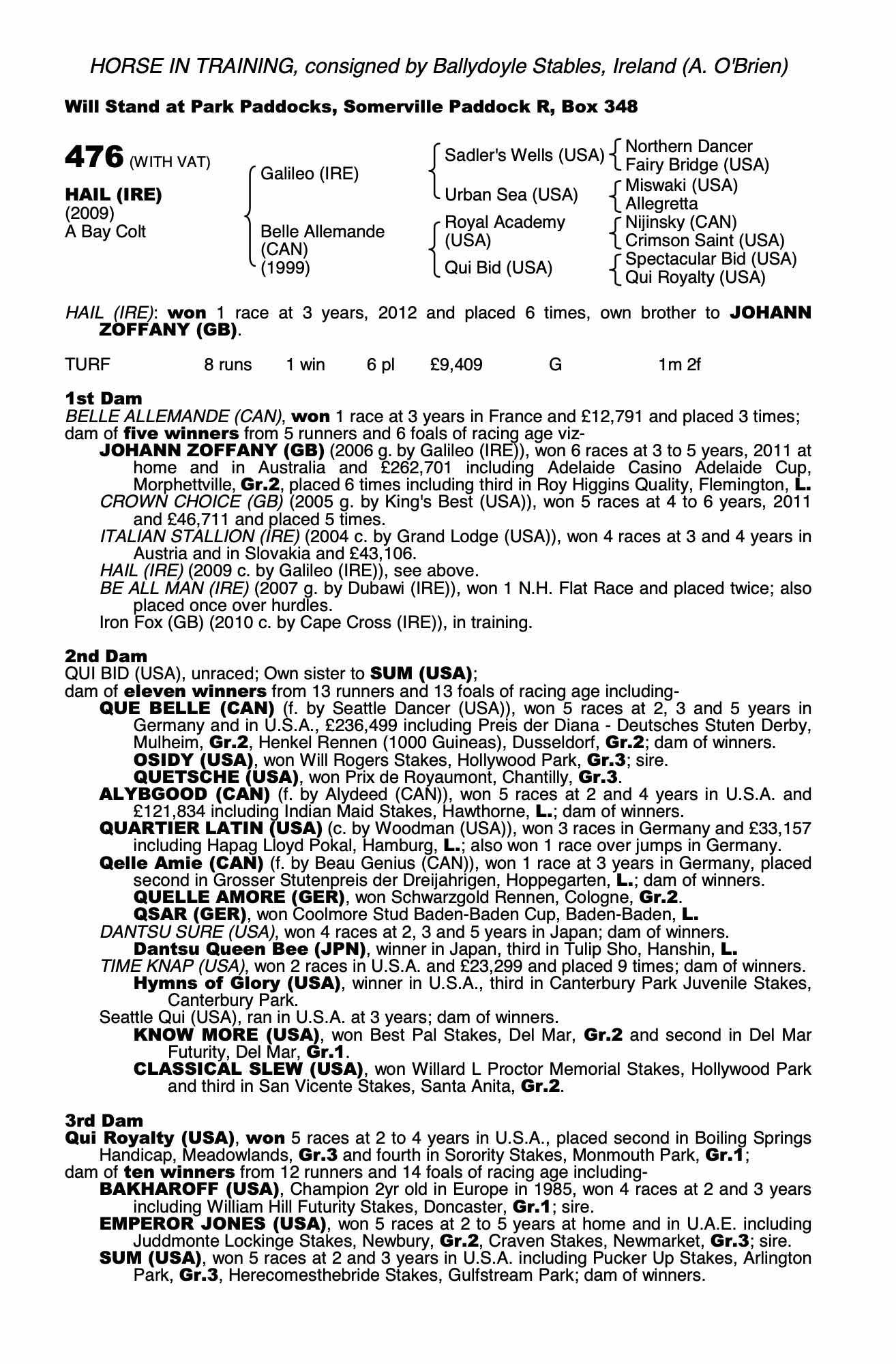 Consignor: Ballydoyle Stables, Ireland (A. O'Brien)