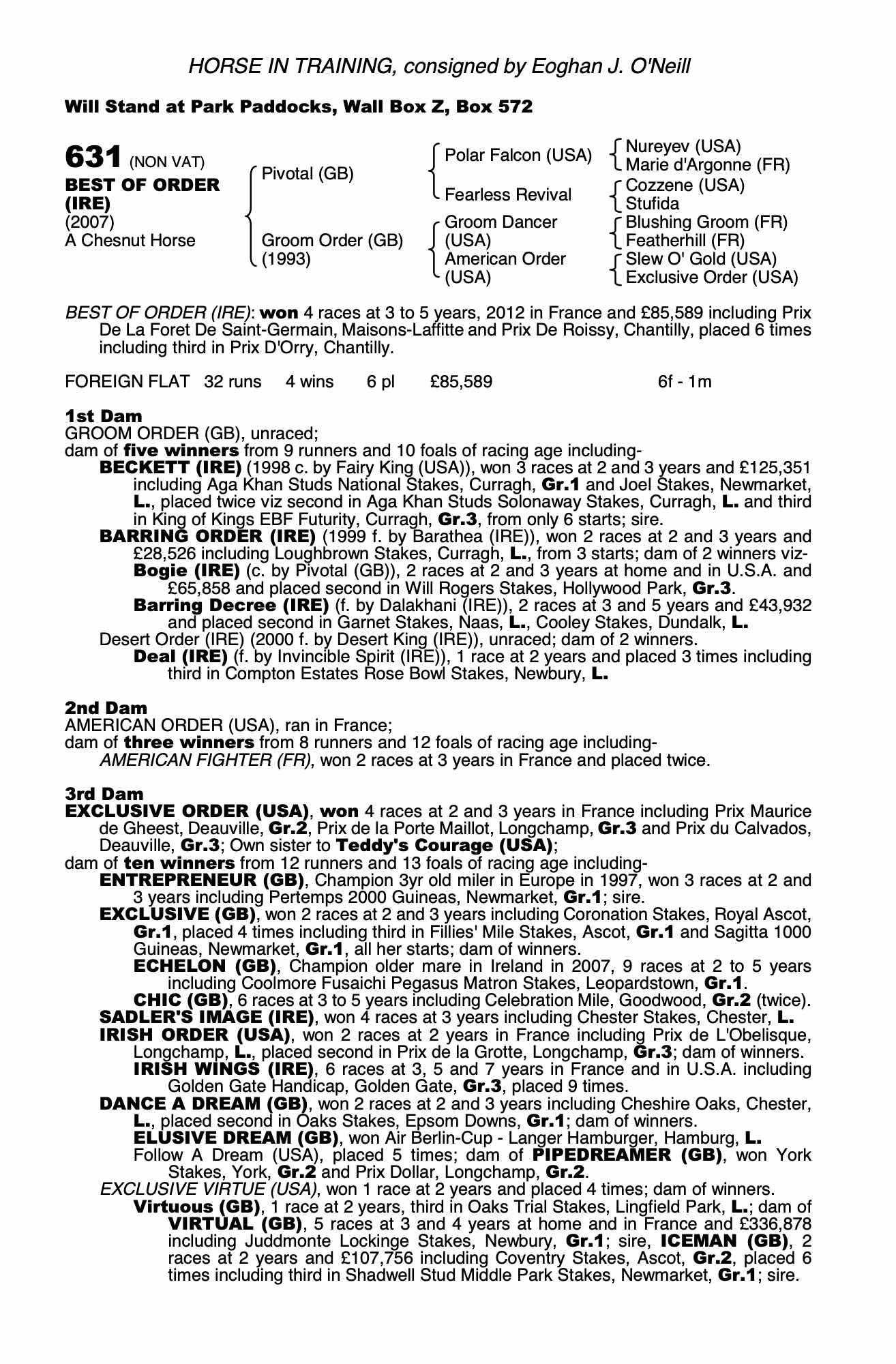 December Mare Sale 2007 lot 2253 Barring Order (IRE) (M. by Barathea (IRE)), Ballymacoll Stud Farm, Ireland=>Vendor 38,000 gns