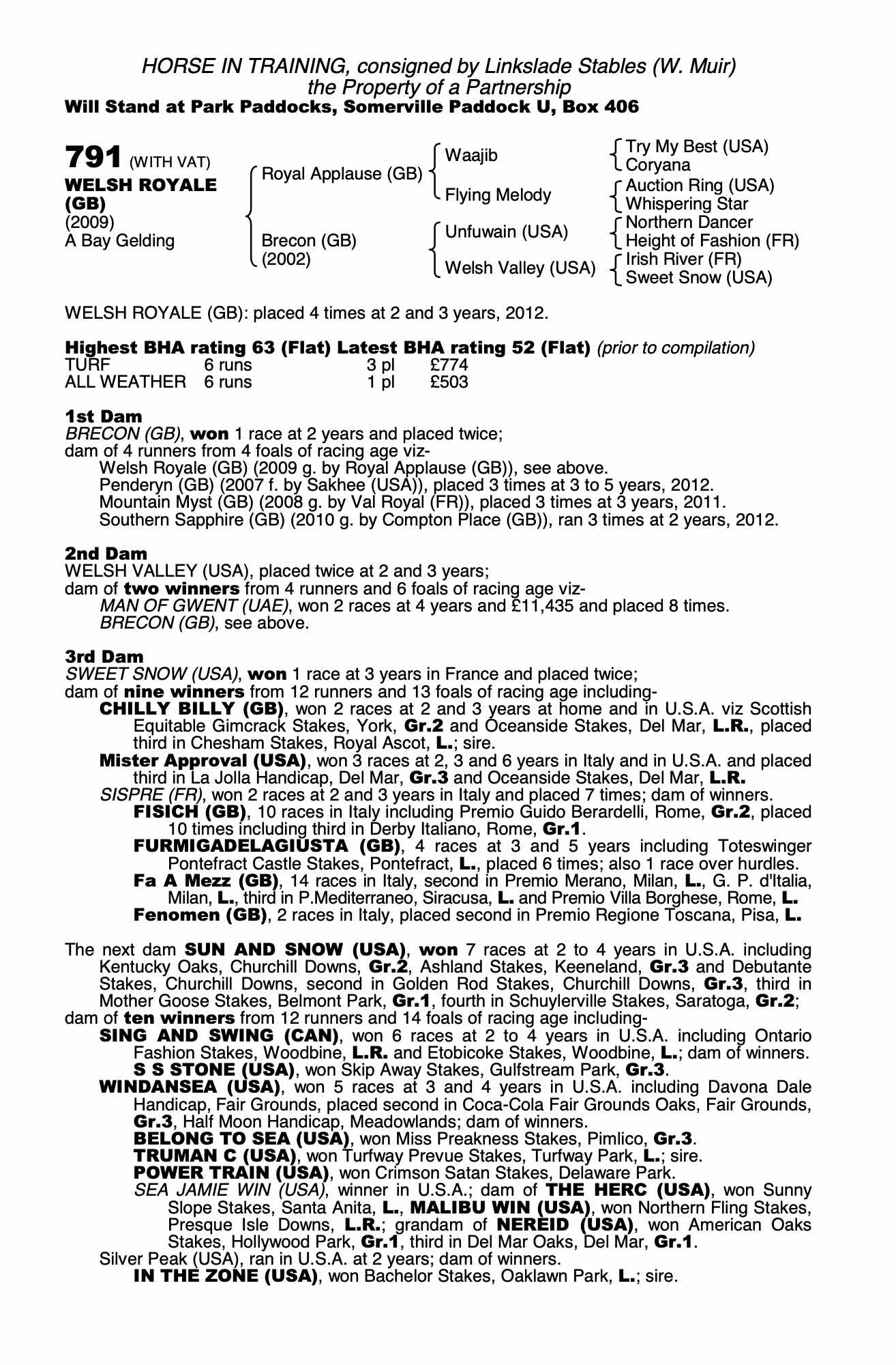 Autumn Horses in Training Sale 2011 lot 812 Mountain Myst (GB) (G. by Val Royal (FR)), Linkslade Stables (W. Muir)=>Masheri Al Matari 5,000 gns
