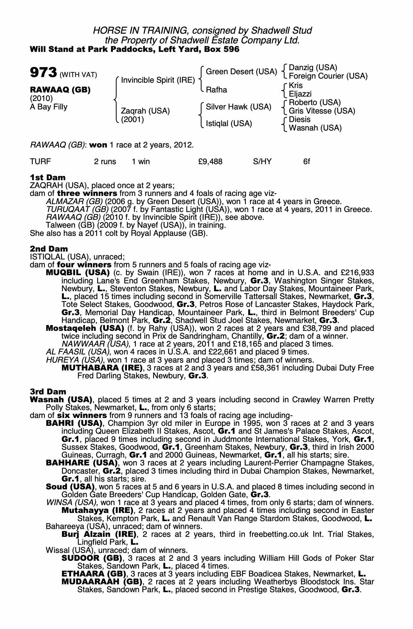 Consignor: Shadwell Stud