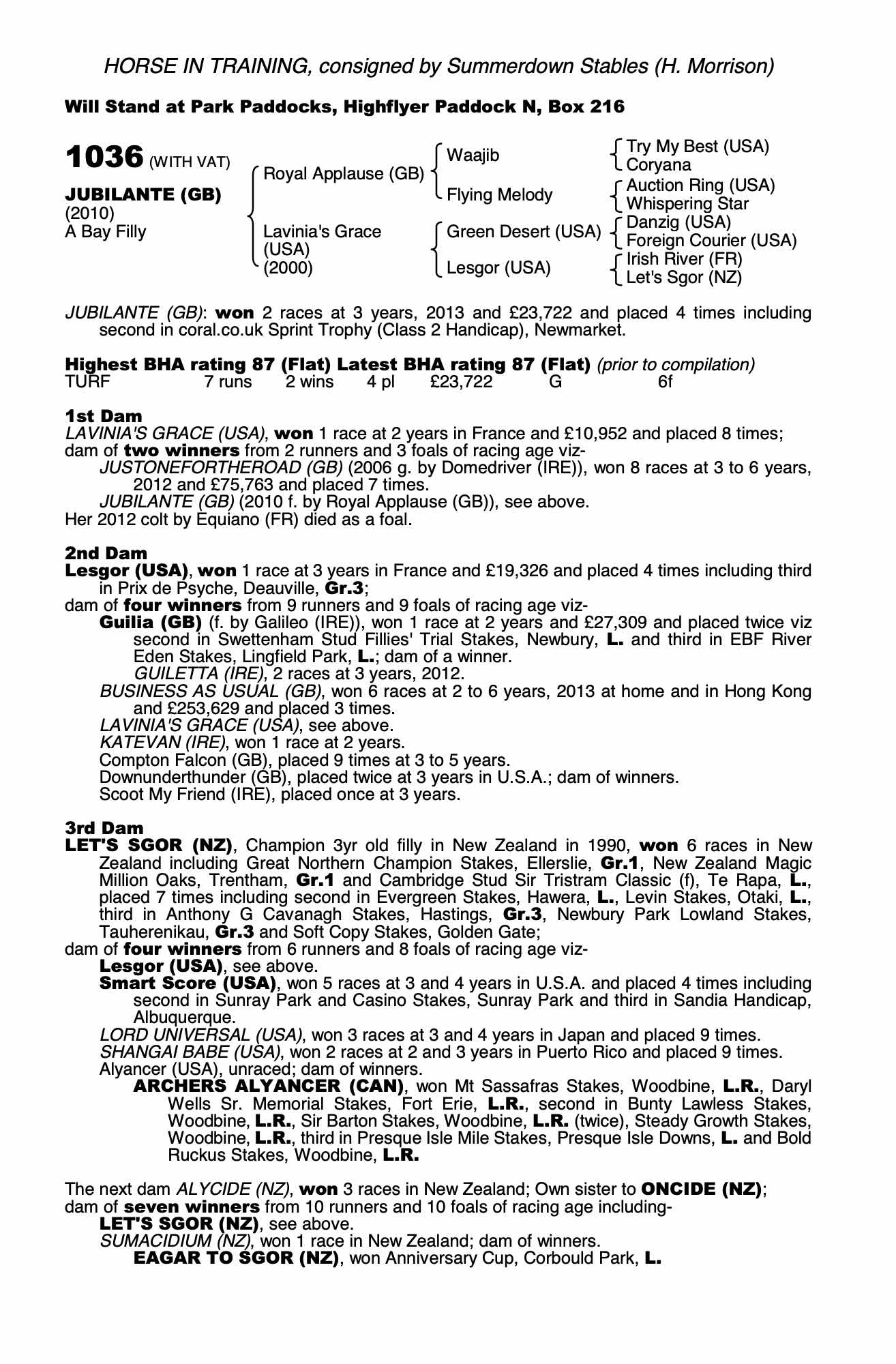 October Yearling Sale, Book 2 2011 lot 799, Wellsummers Stud=>Hugh Morrison 14,000 gns