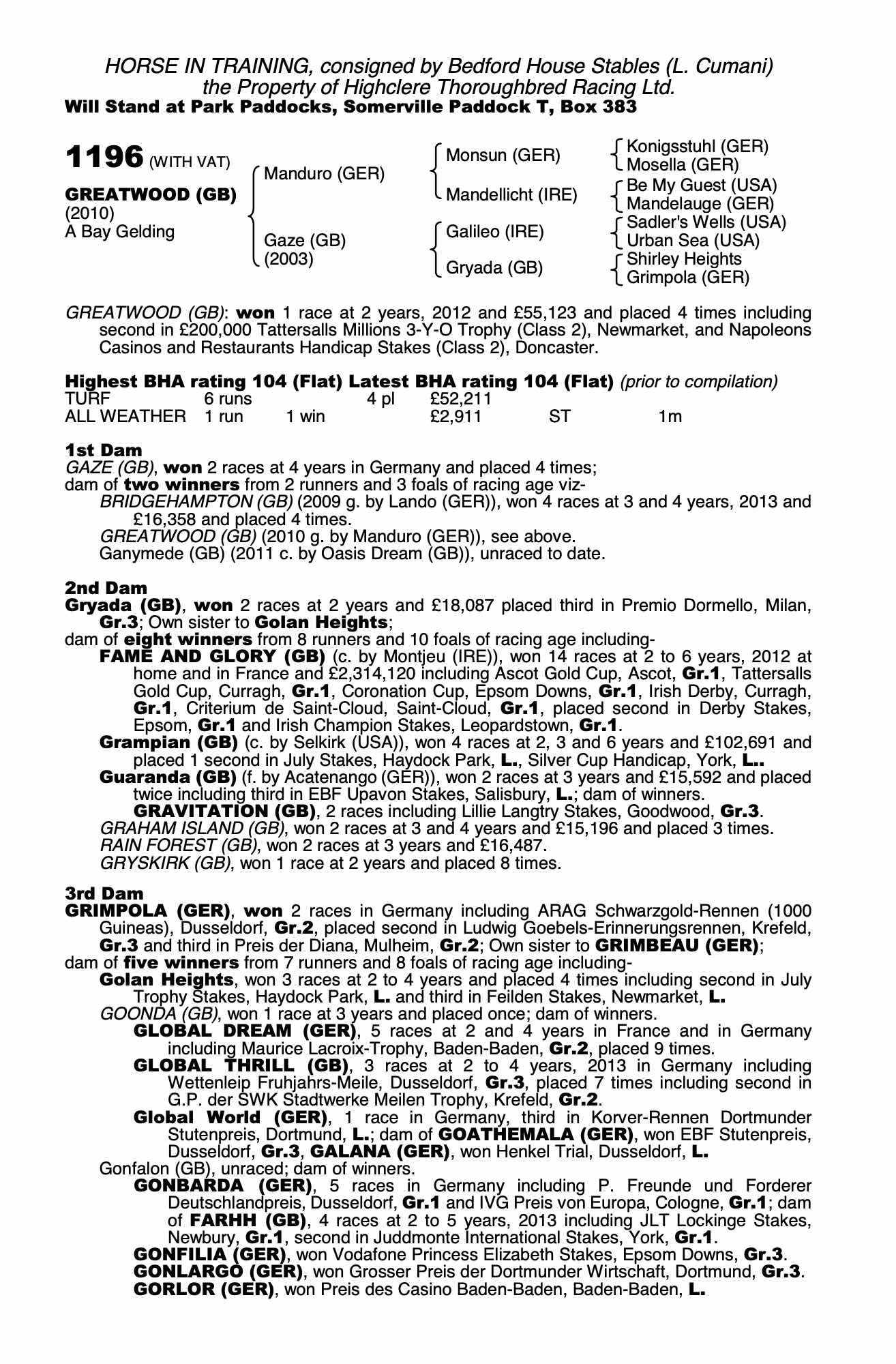 December Foal Sale 2014 lot 1046 F. by Lawman (FR) 2014, Windmill Farm=>Meridian International 100,000 gns