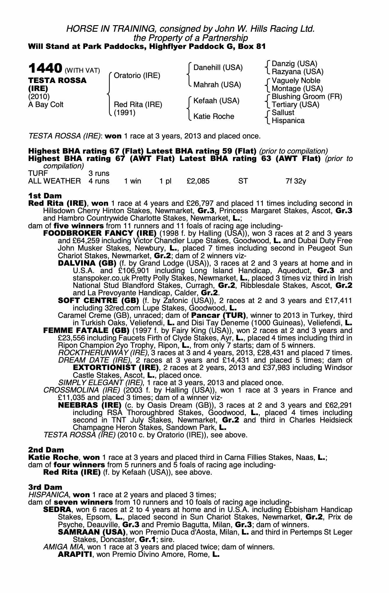 Houghton Yearling Sale 2001 lot 146 F. by Bluebird (USA) , Voute Sales, Agent=>C Gordon-Watson Bloodstock 80,000 gns