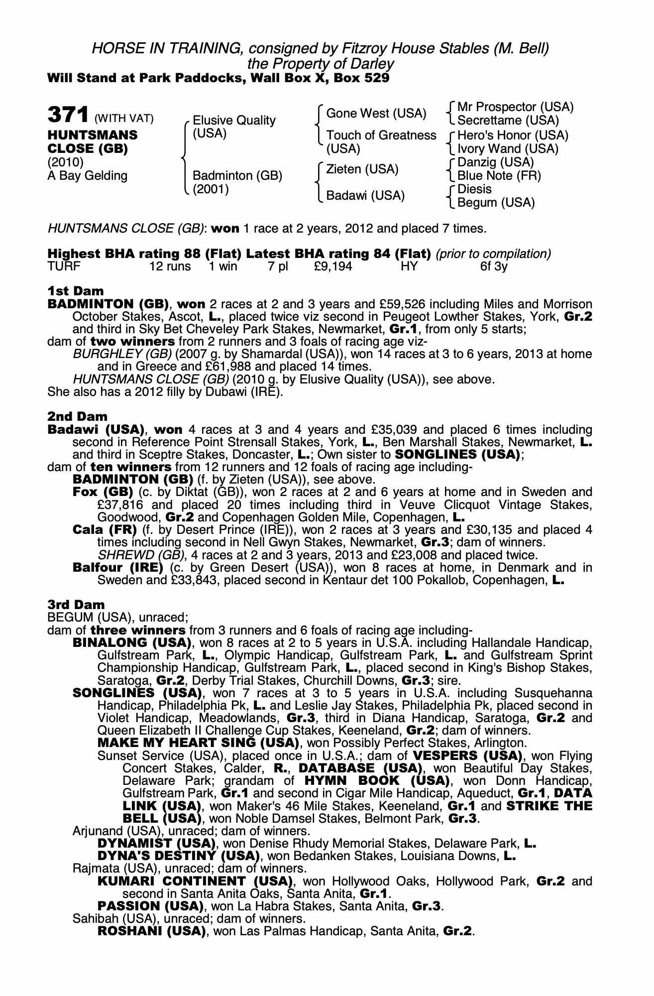 Consignor: Fitzroy House Stables (M. Bell)