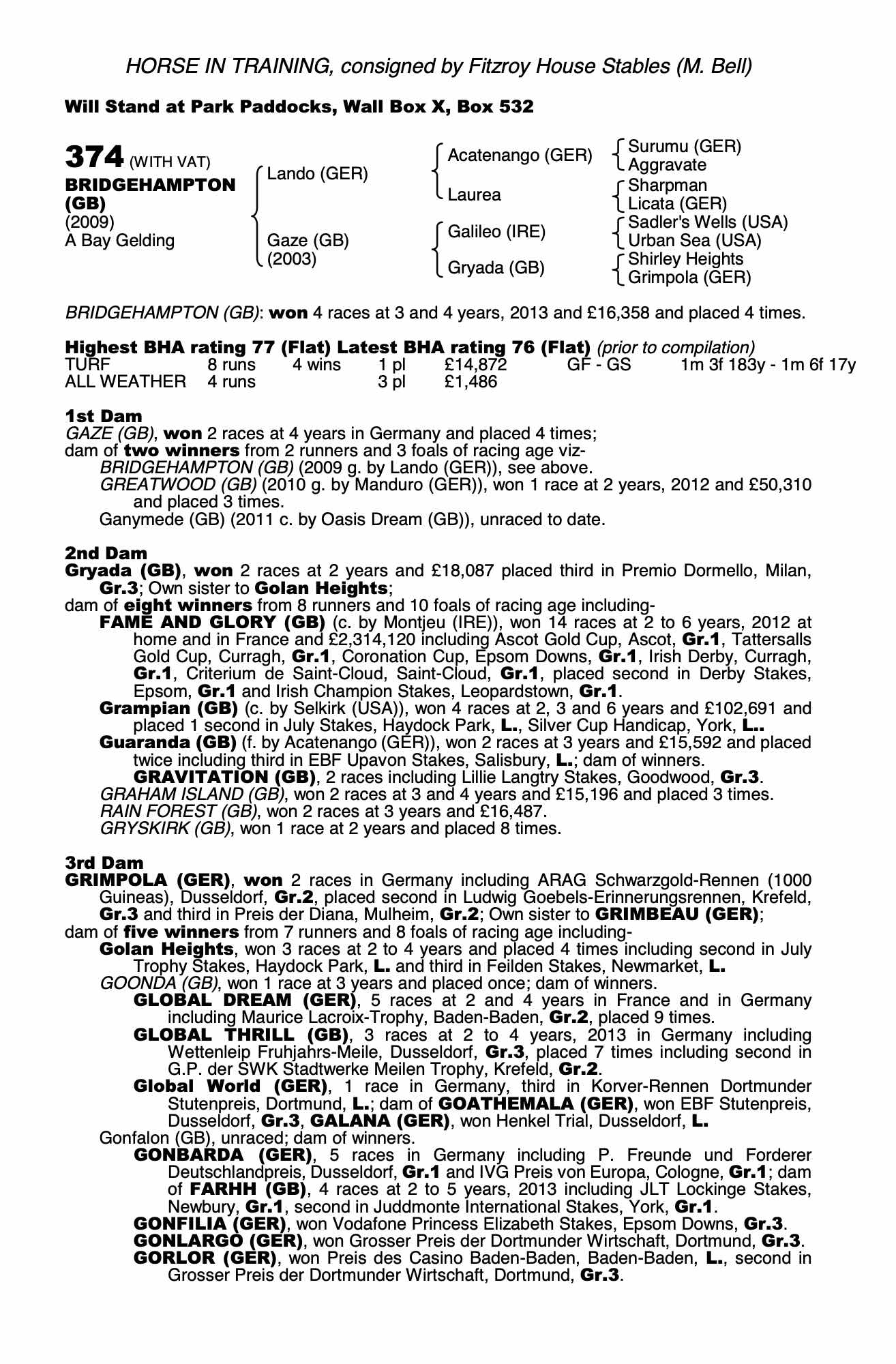 Autumn Horses in Training Sale 2013 lot 1196 Greatwood (GB) (G. by Manduro (GER)), Bedford House Stables (L. Cumani)=>McKeever Bloodstock/Gai Waterhouse Racing 180,000 gns