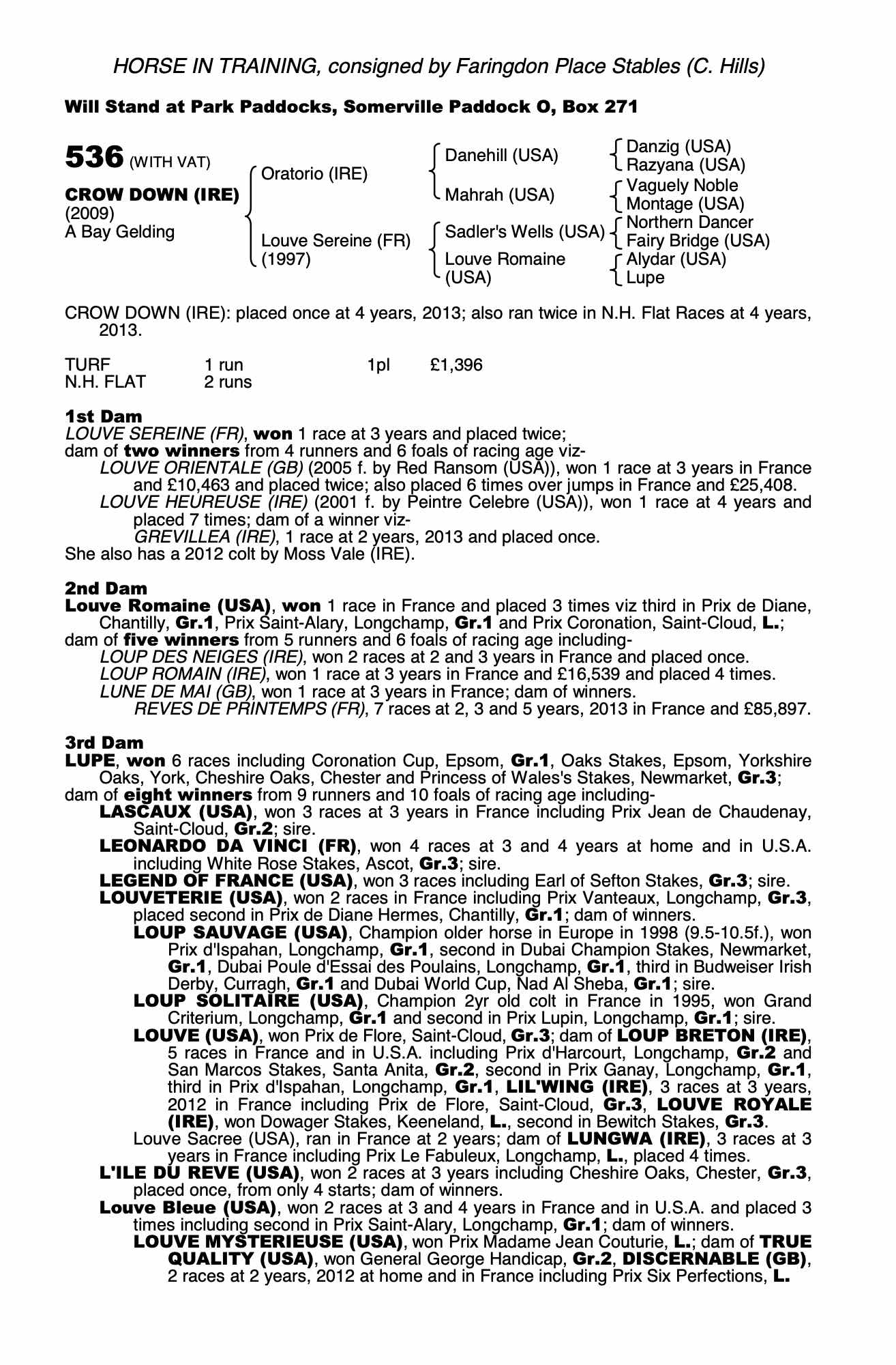 December Mare Sale 2004 lot 2512 Louve Heureuse (IRE) (F. by Peintre Celebre (USA)), Voute Sales, Agent=>Nathan IM Rossiter 1,000 gns