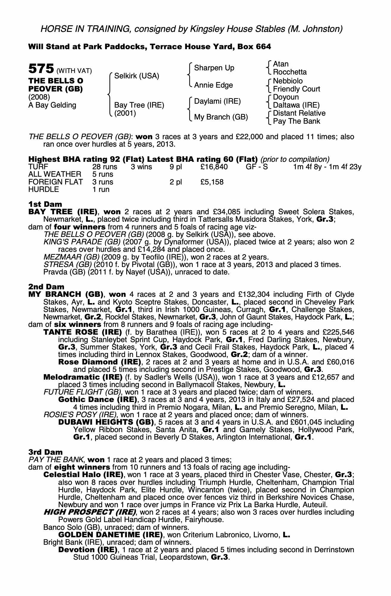 Consignor: Kingsley House Stables (M. Johnston)