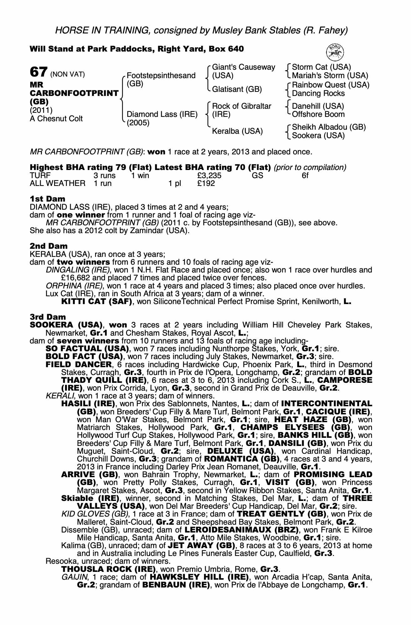 Consignor: Musley Bank Stables (R. Fahey)