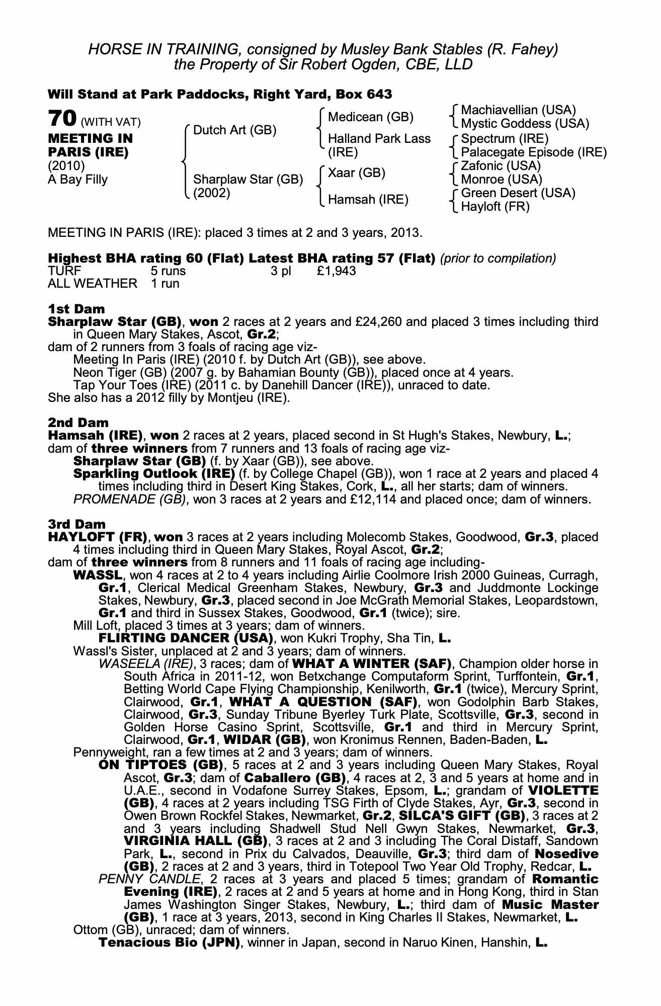 Autumn Horses in Training Sale 2014 lot 935 Tap Your Toes (IRE) (C. by Danehill Dancer (IRE)), Bedford House Stables (L. Cumani)=>Bob Ho 6,500 gns