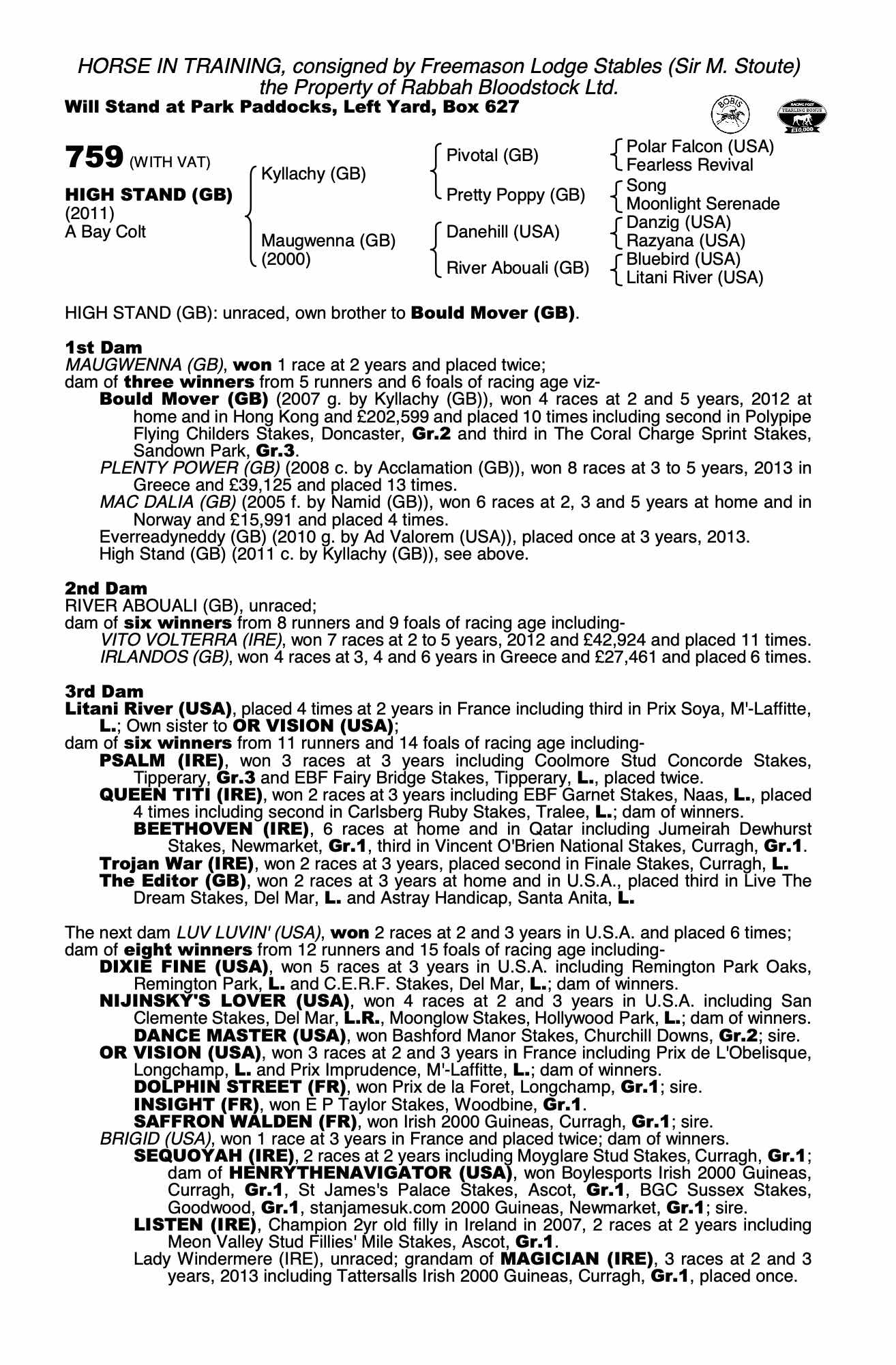 Consignor: Freemason Lodge Stables (Sir M. Stoute)