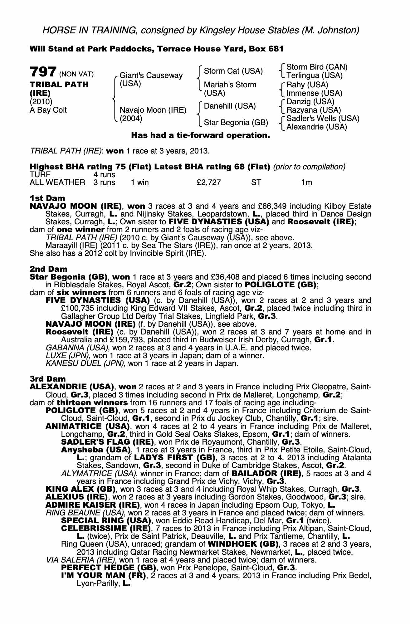 Consignor: Kingsley House Stables (M. Johnston)