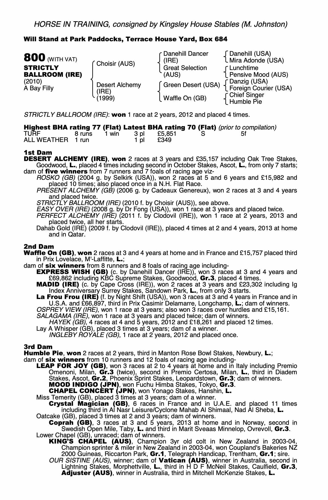 Consignor: Kingsley House Stables (M. Johnston)