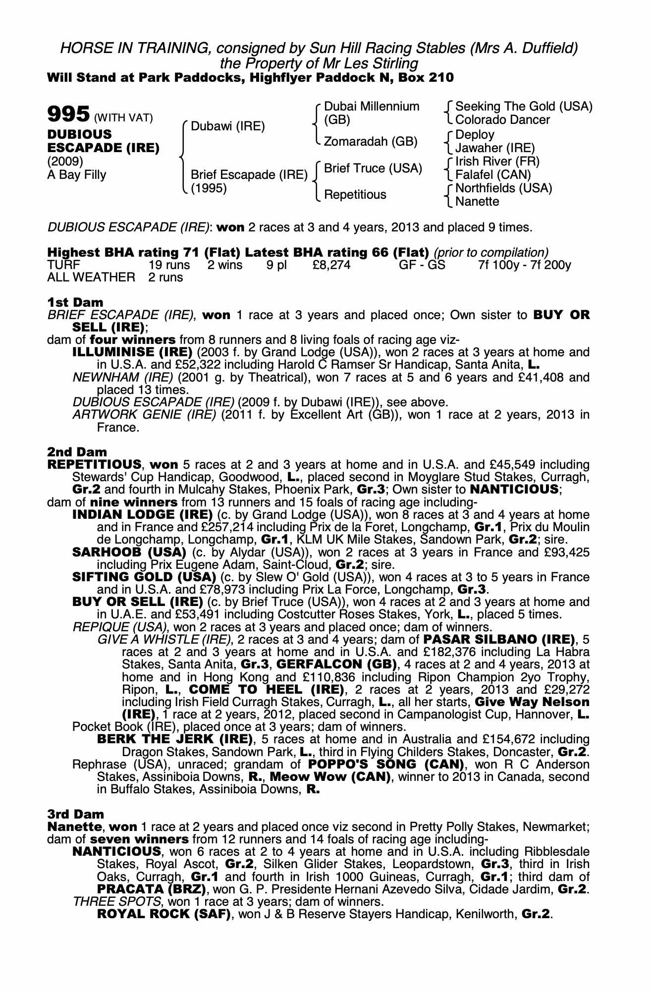 Consignor: Sun Hill Racing Stables (Mrs A. Duffield)
