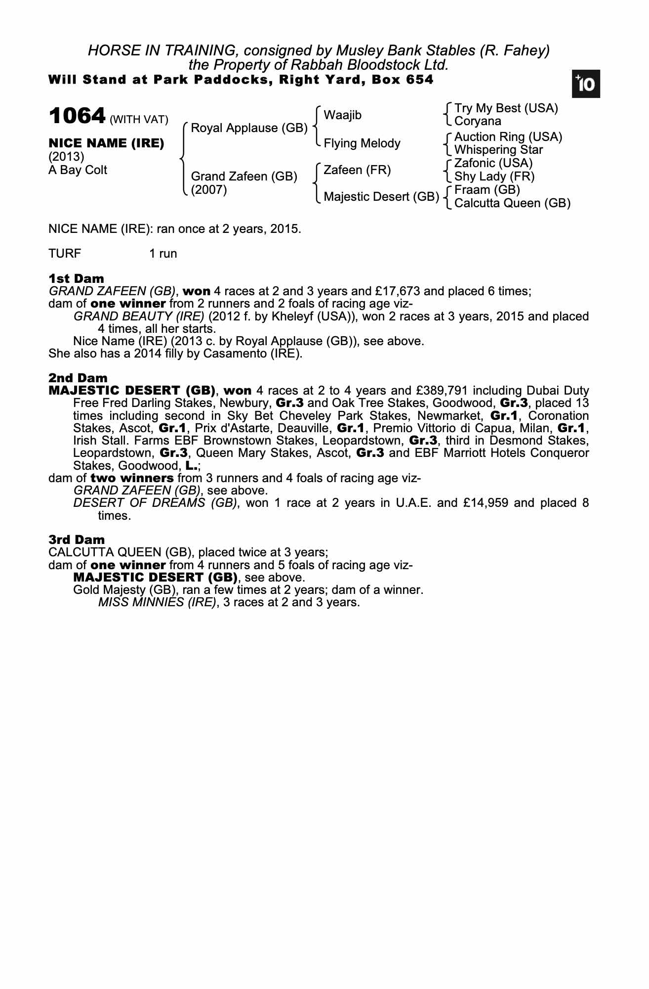 Consignor: Musley Bank Stables (R. Fahey)