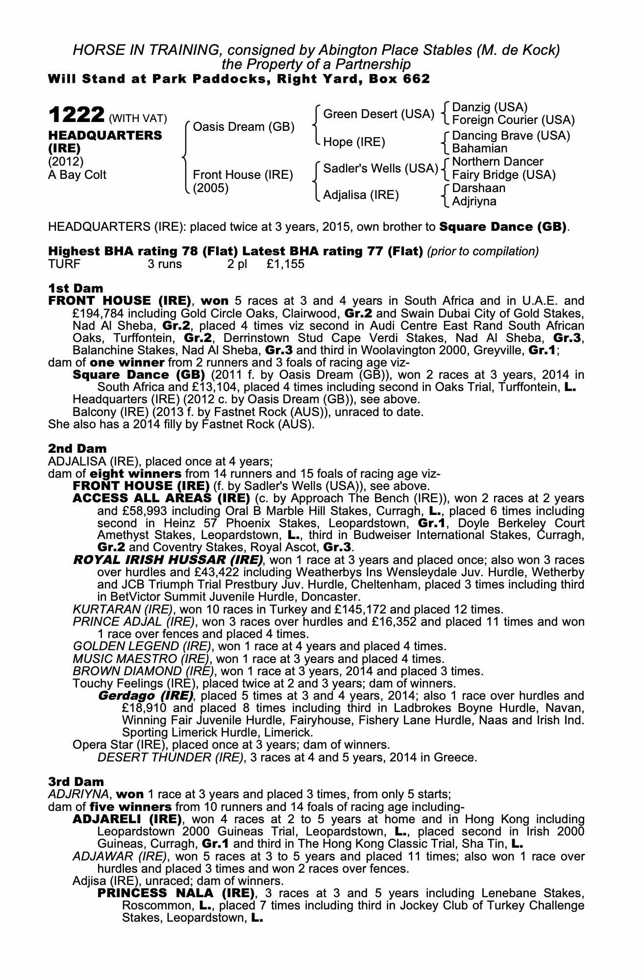 Consignor: Abington Place Stables (M. de Kock)