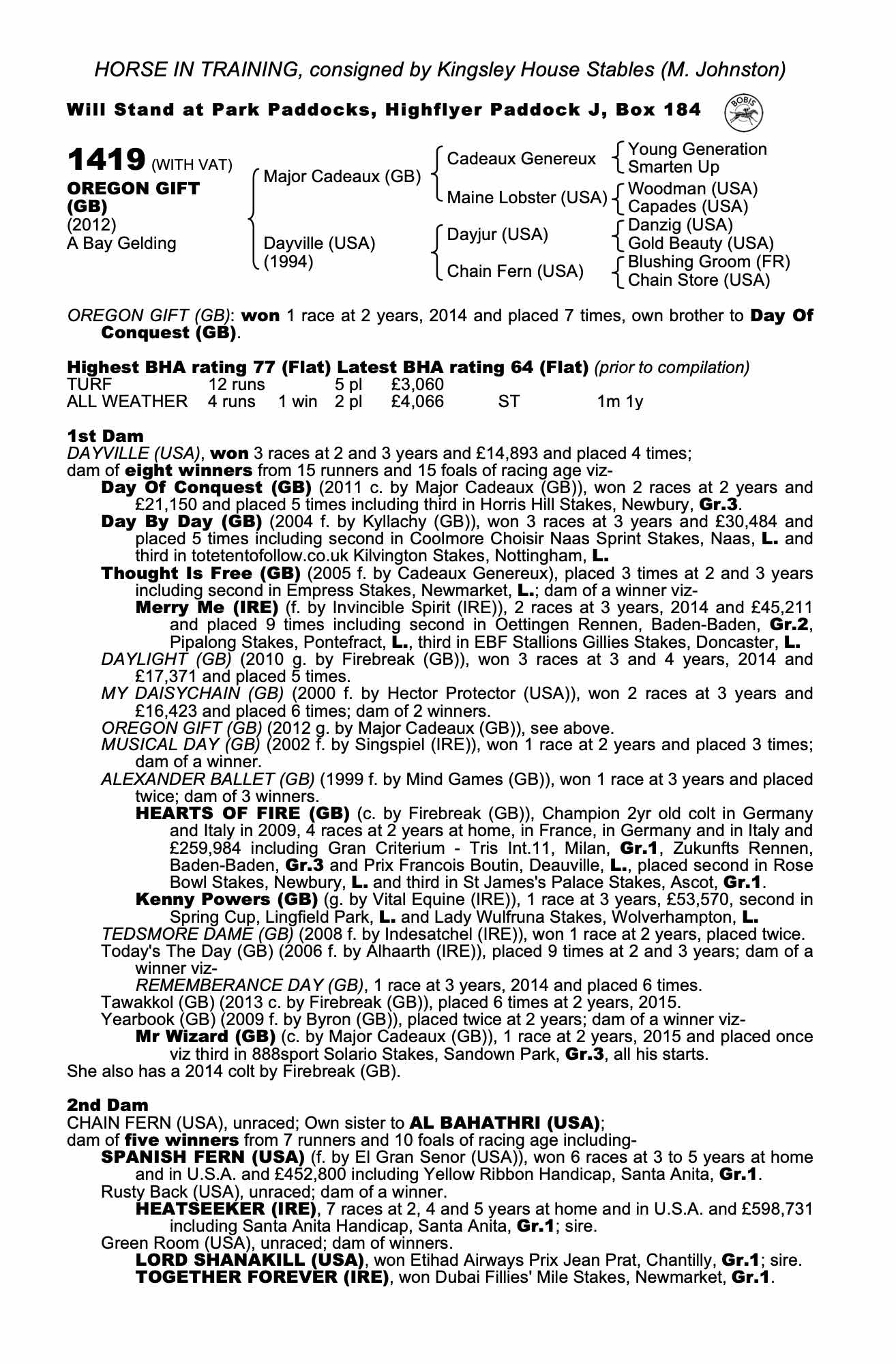 July Sale 2016 lot 578 Daylight (GB) (G. by Firebreak (GB)), Flaxton Stables (M. Easterby)=>Jentl Verbeke 2,000 gns