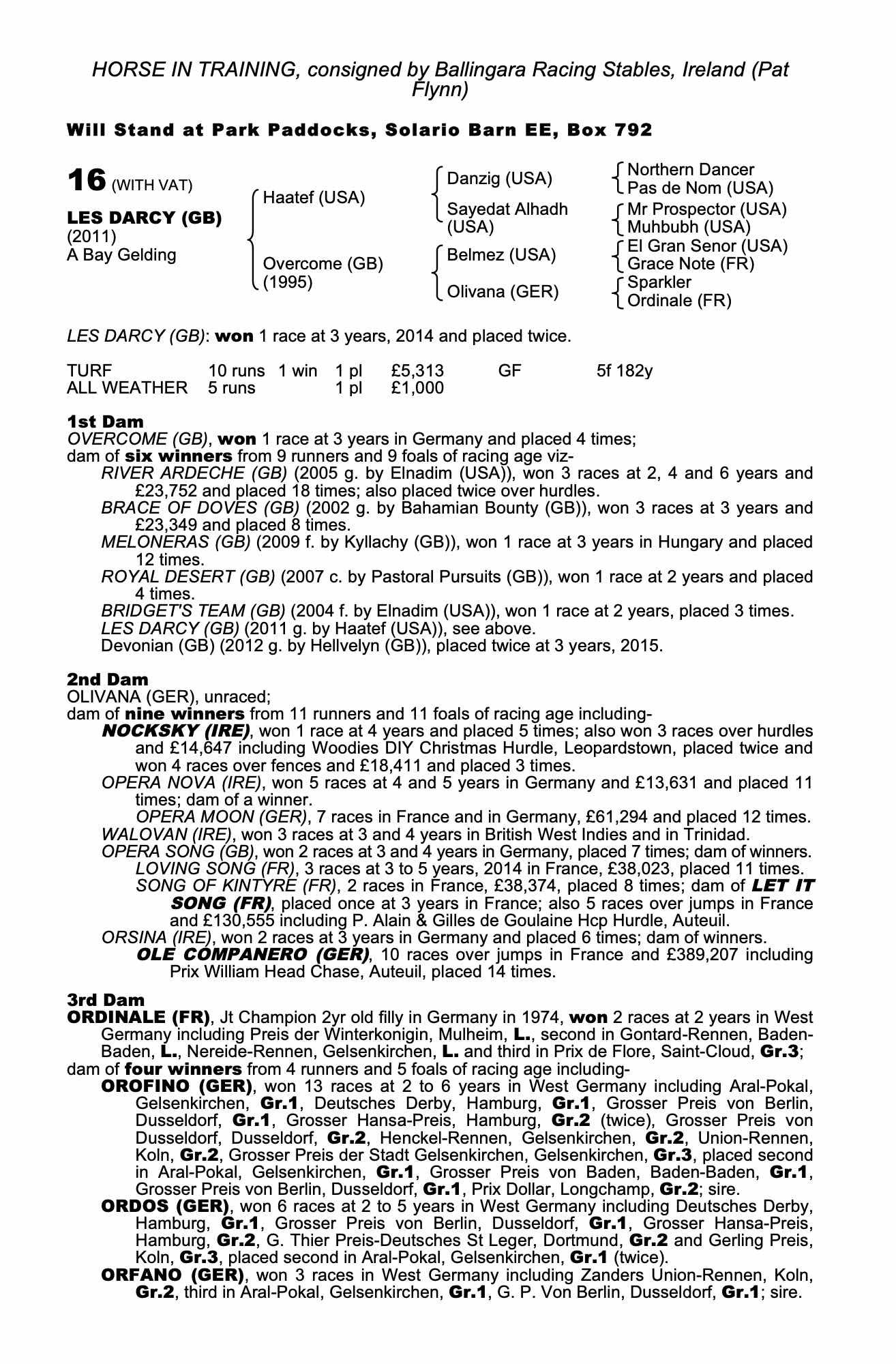Consignor: Ballingara Racing Stables, Ireland (Pat Flynn)