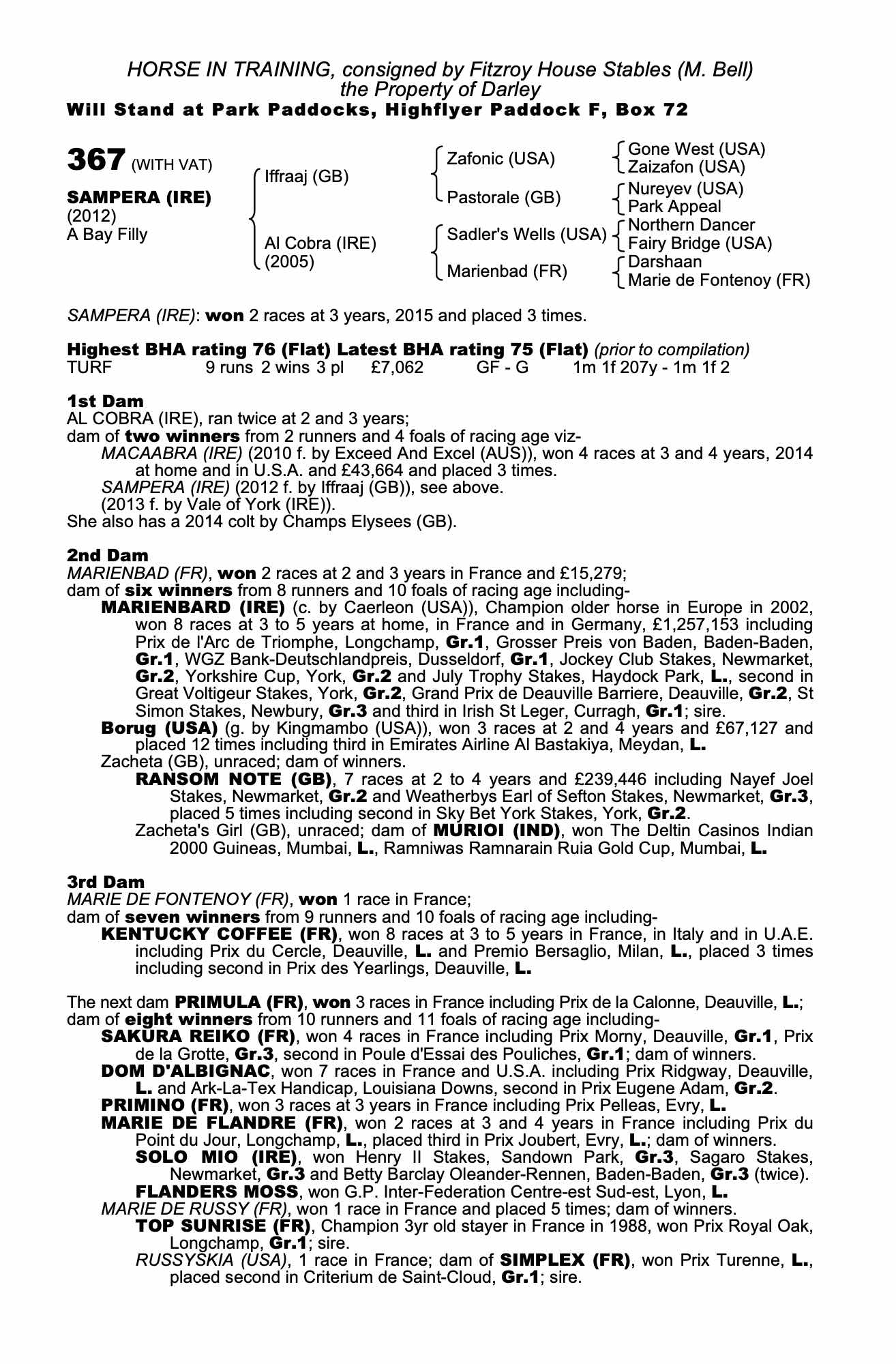 October Yearling Sale, Book 3 2017 lot 1853 F. by Champs Elysees (GB) 2016, Barton Stud=>Vendor 30,000 gns