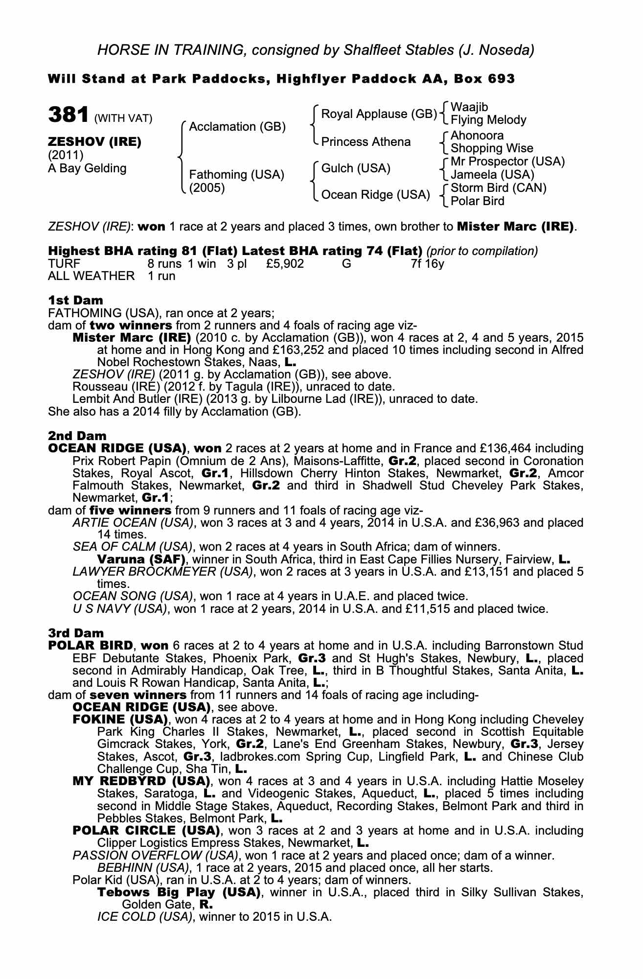 Consignor: Shalfleet Stables (J. Noseda)