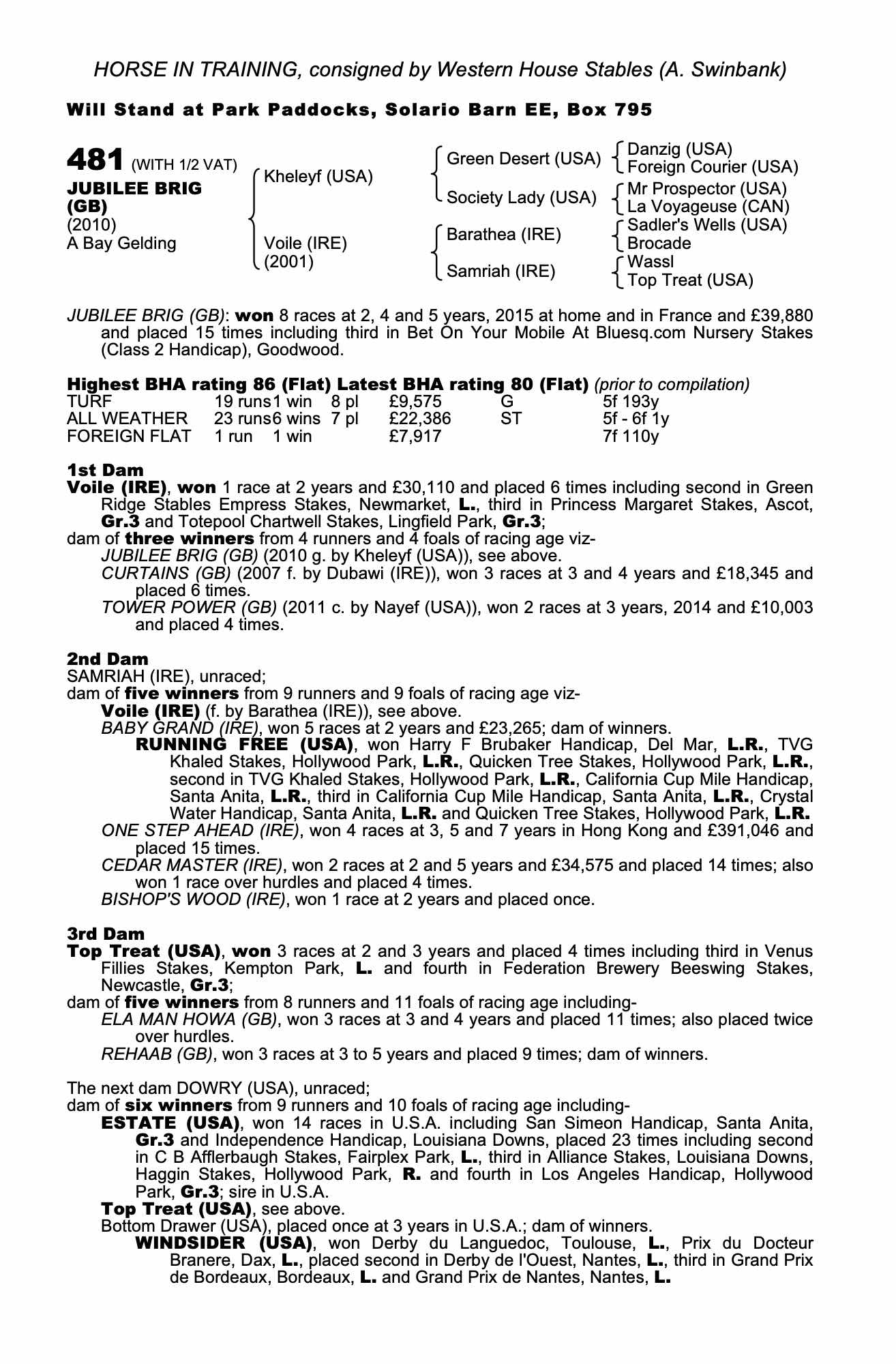 Consignor: Western House Stables (A. Swinbank)