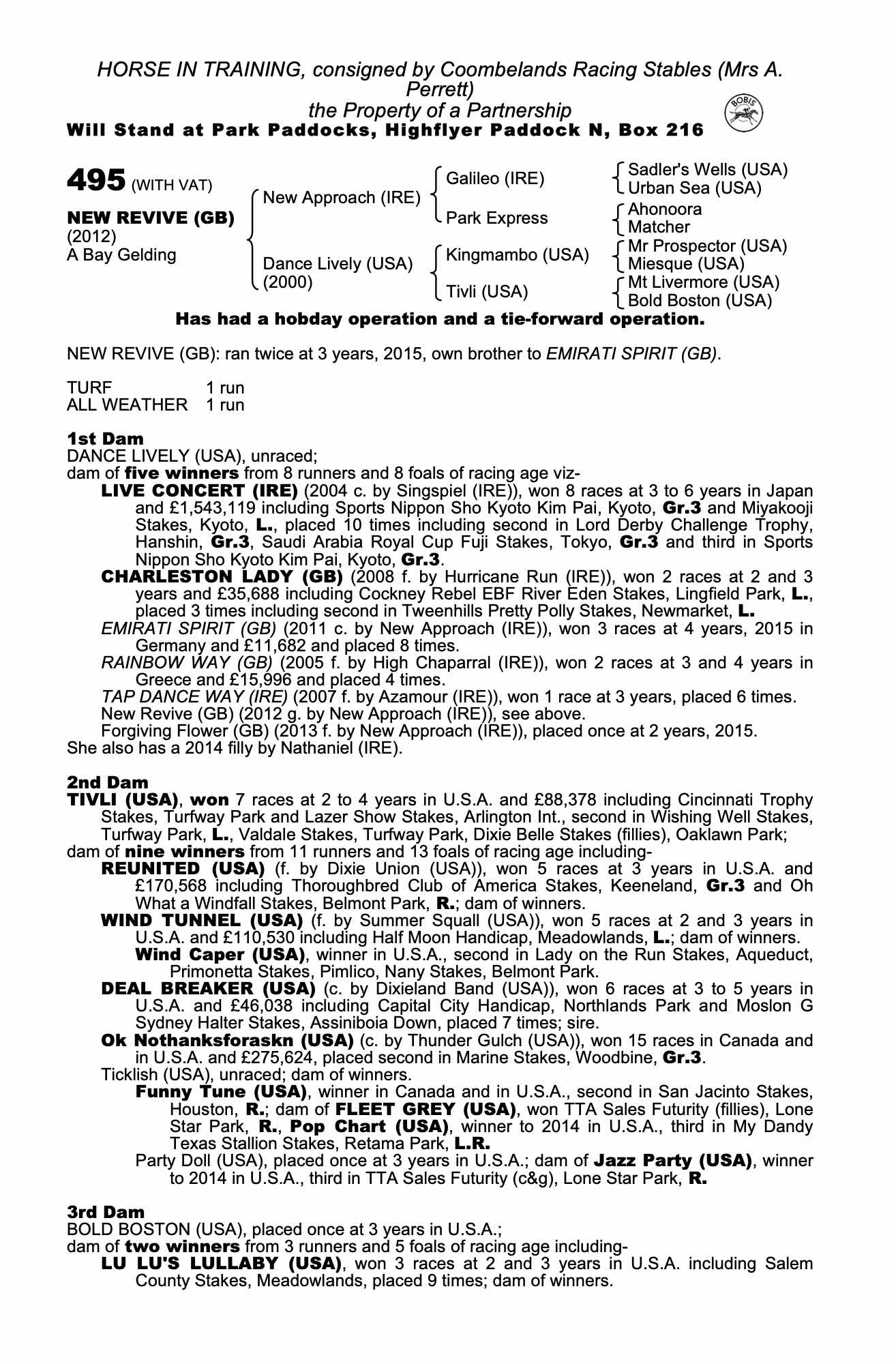 Consignor: Coombelands Racing Stables (Mrs A. Perrett)
