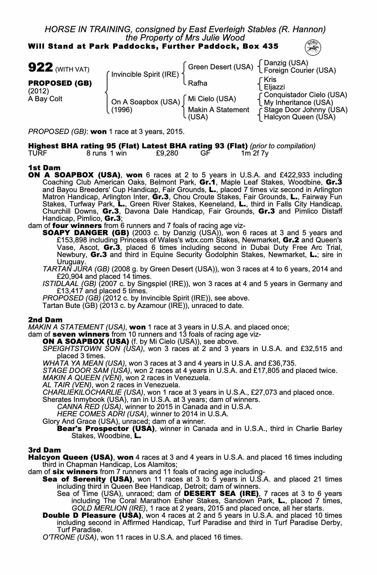 July Sale 2014 lot 639 Tartan Jura (GB) (G. by Green Desert (USA)), Kingsley House Stables (M. Johnston)=>J Moore 1,000 gns