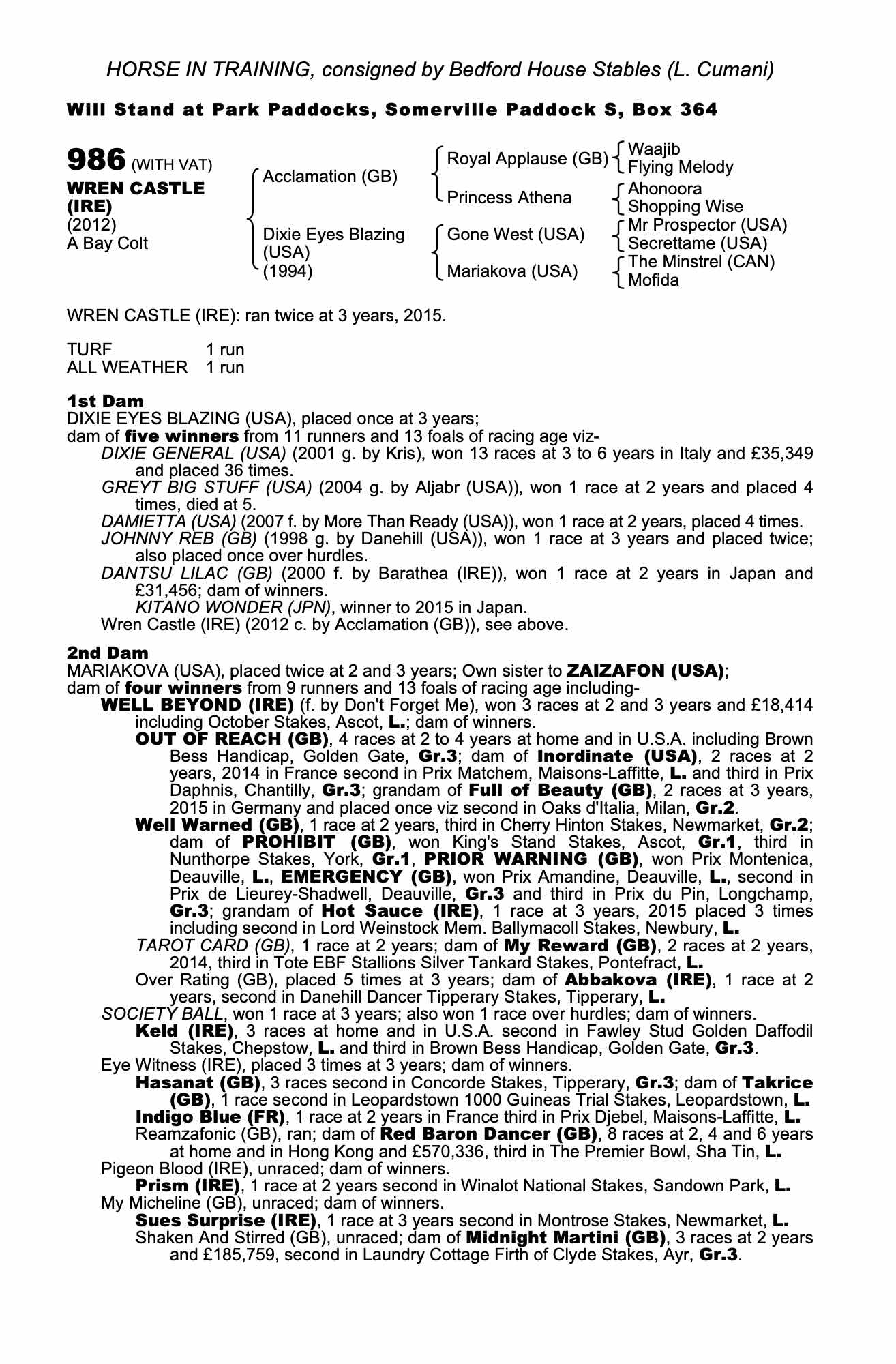 Consignor: Bedford House Stables (L. Cumani)