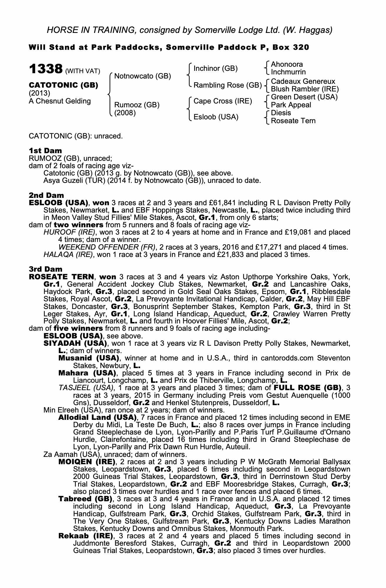 Consignor: Somerville Lodge Ltd. (W. Haggas)