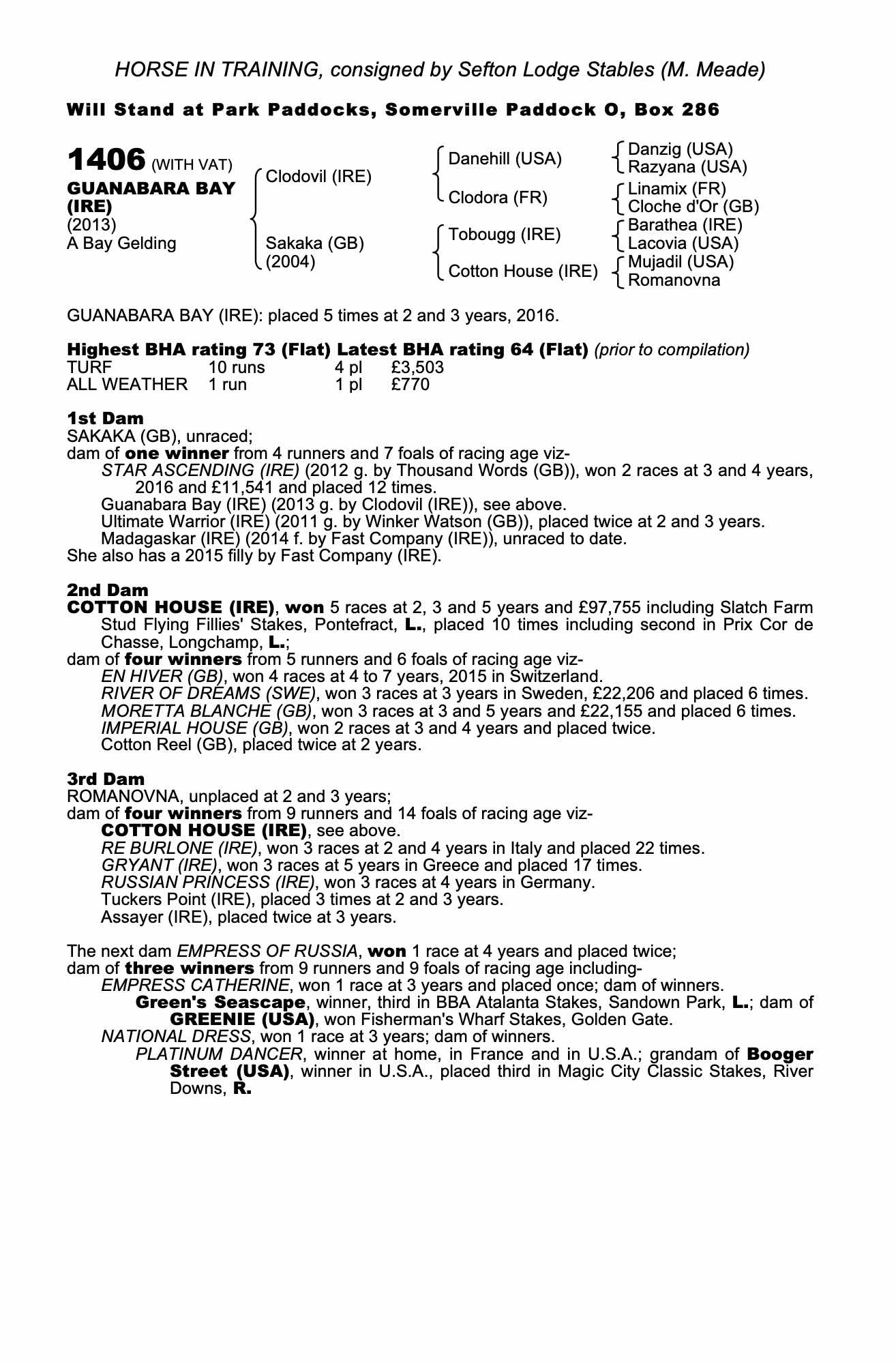 Consignor: Sefton Lodge Stables (M. Meade)