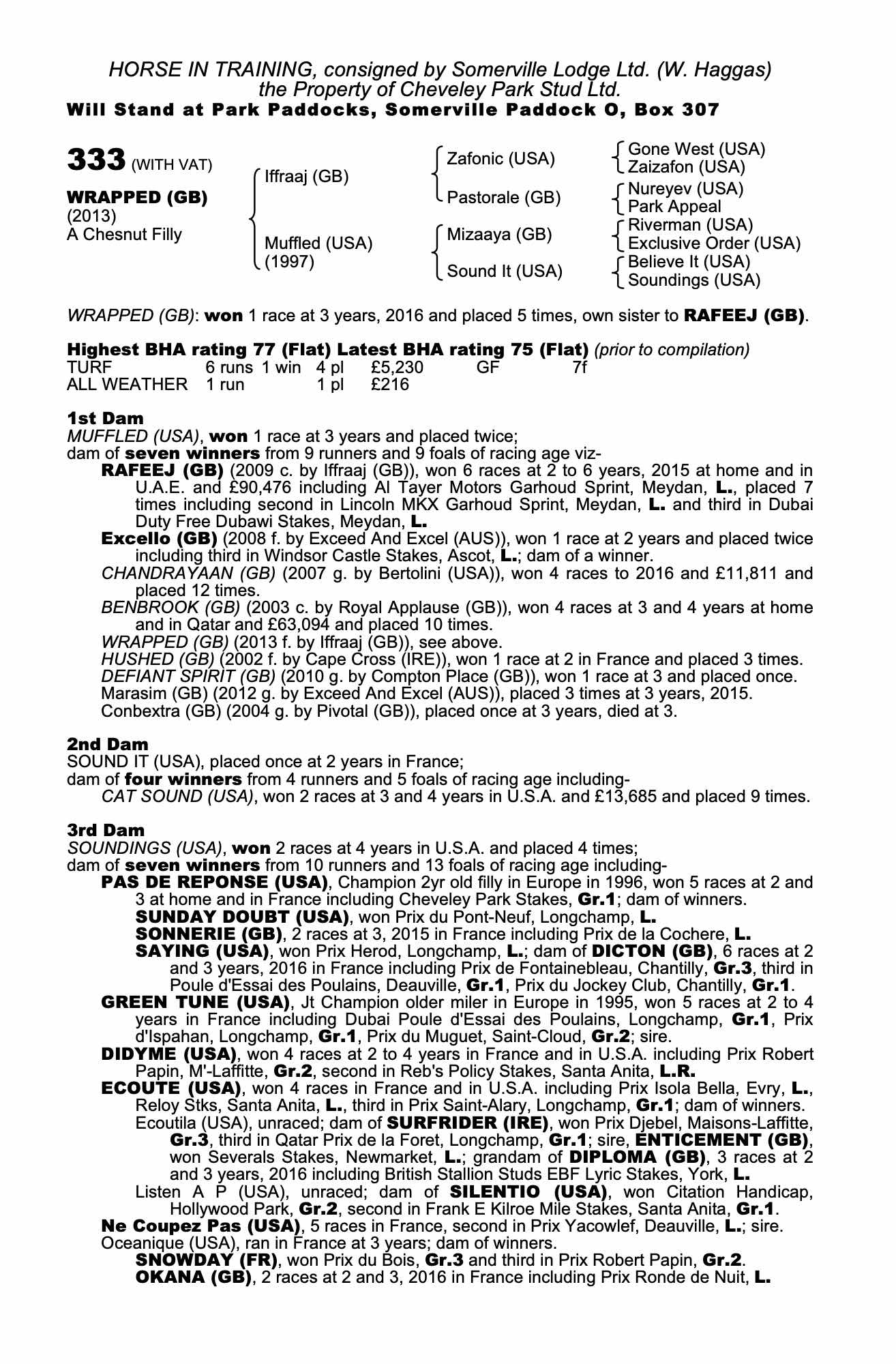 Consignor: Somerville Lodge Ltd. (W. Haggas)