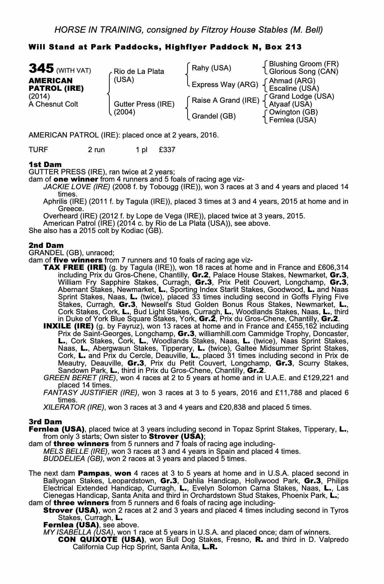 Autumn Horses in Training Sale 2013 lot 1473 F. by Tagula (IRE) 2011, Spring Cottage Stables (B. Ellison)=>Vendor 800 gns