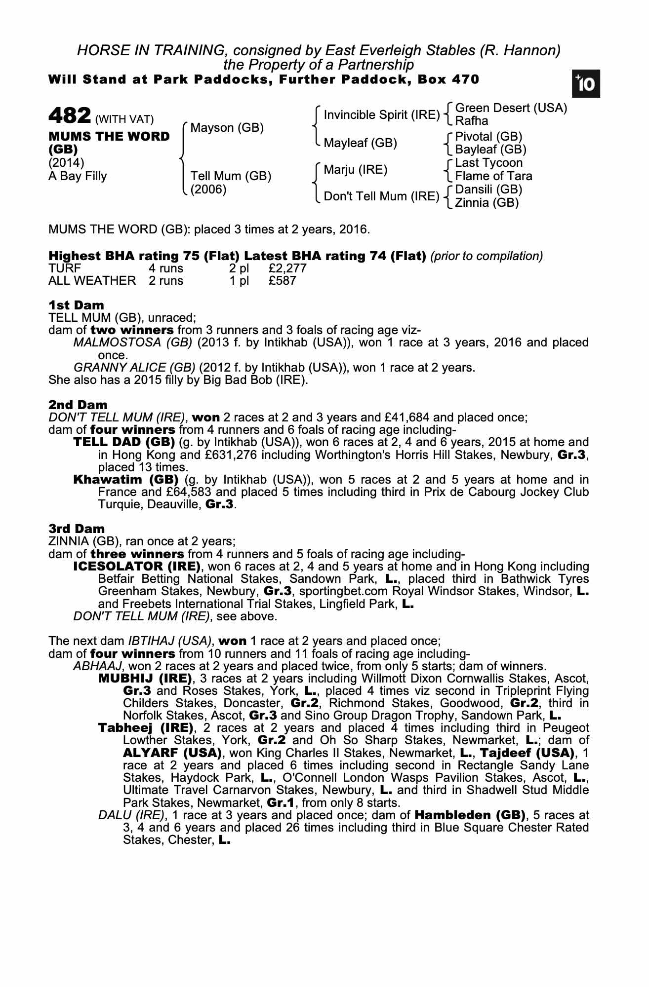 December Mare Sale 2017 lot 2258 Malmostosa (GB) (M. by Intikhab (USA)), Far Westfield Farm=>Hever Stud Farm 6,000 gns