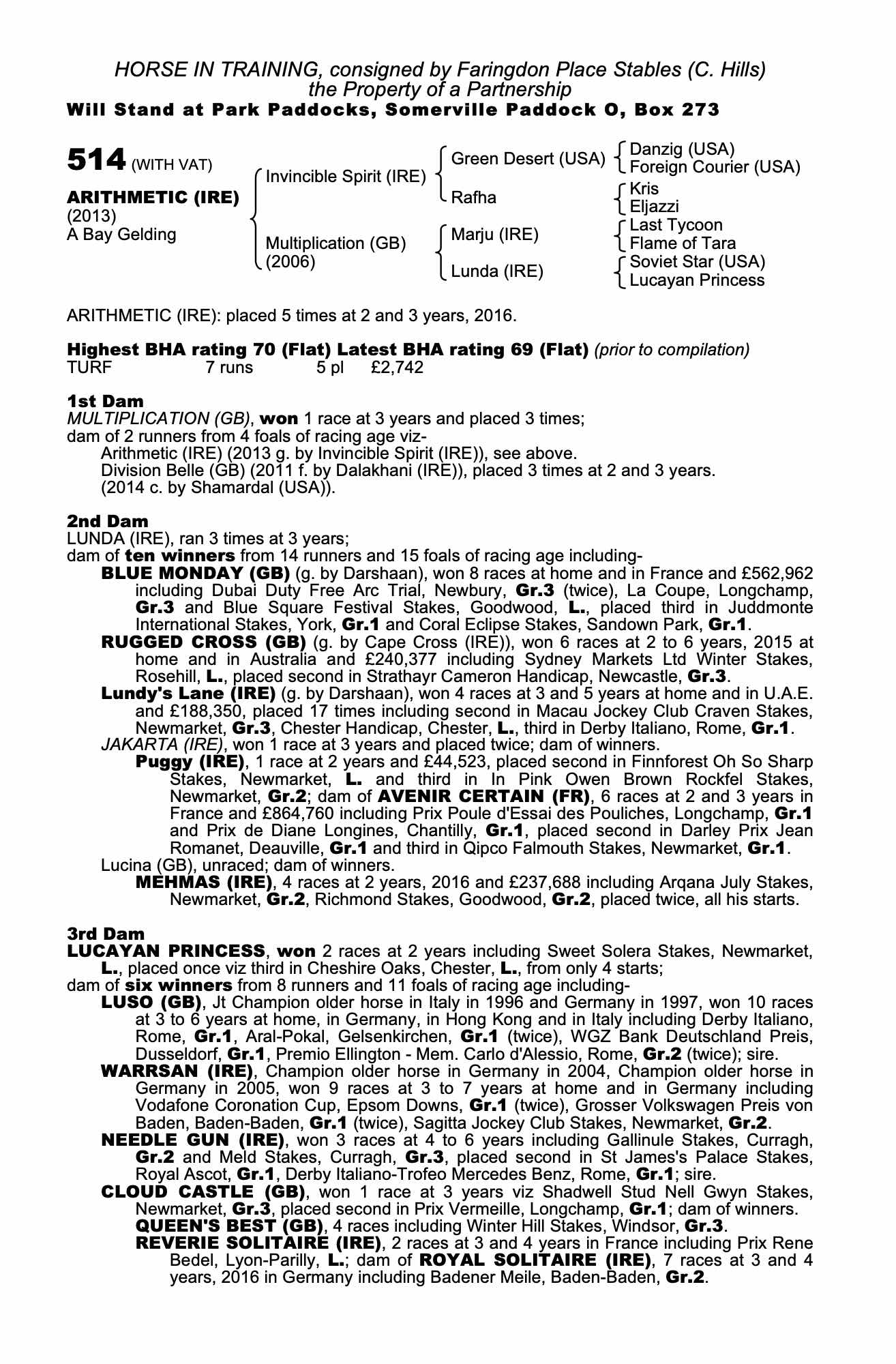 July Sale 2016 lot 376, Faringdon Place Stables (C. Hills)=>Lot Not Sold 19,000 gns